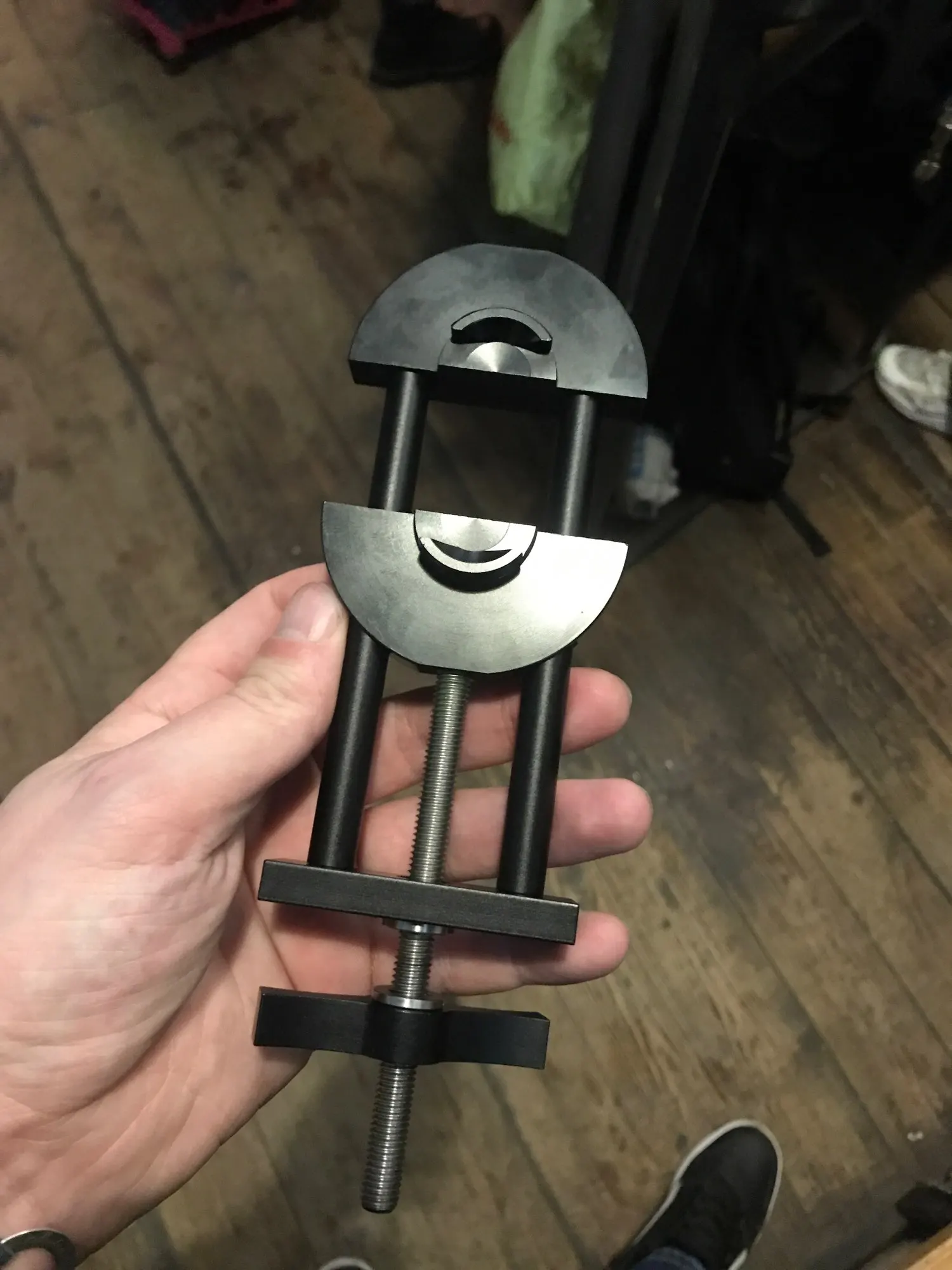 Механизм сделан достаточно прочно, хотя раздражает, что стержень с резьбой болтается. Уже успел опробовать на объективе canon 85 1.2 II, замятие было достаточно сильным, и когда стал выправлять, оправа стала продавливаться с противоположной стороны. Так что будьте аккуратнее с этим. Как это предотвратить даже не знаю, разве что в тиски зажимать
