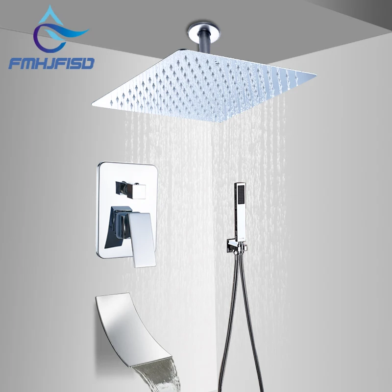 Душевой смеситель FMHJFISD, трехсторонняя душевая система, потолочное крепление, насадка тропический душ 16 дюймов, клапан, кран Водопад, ручной душ