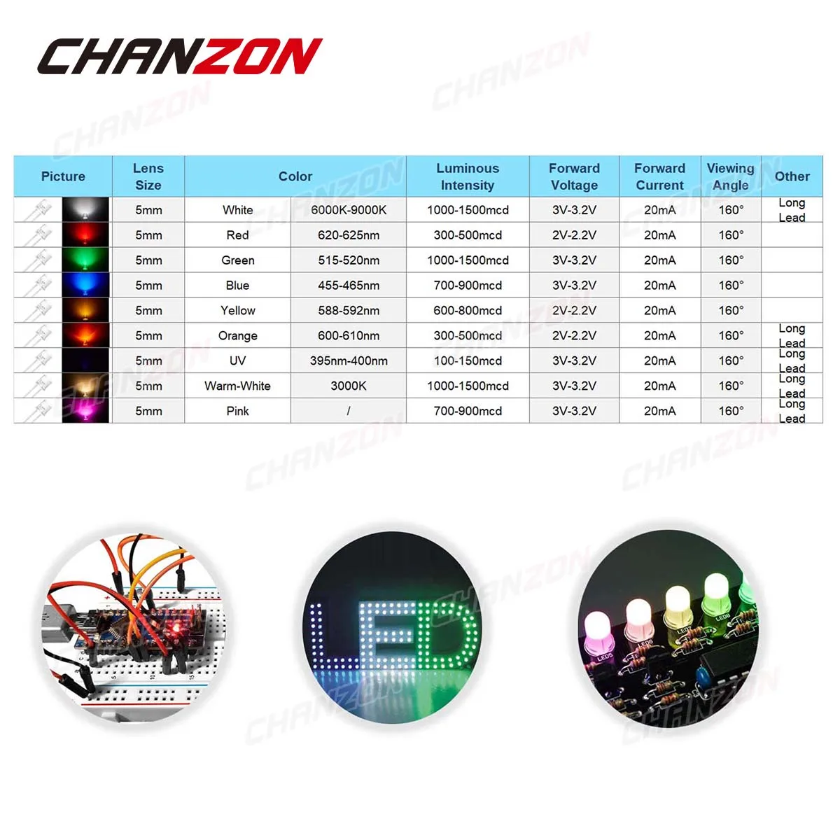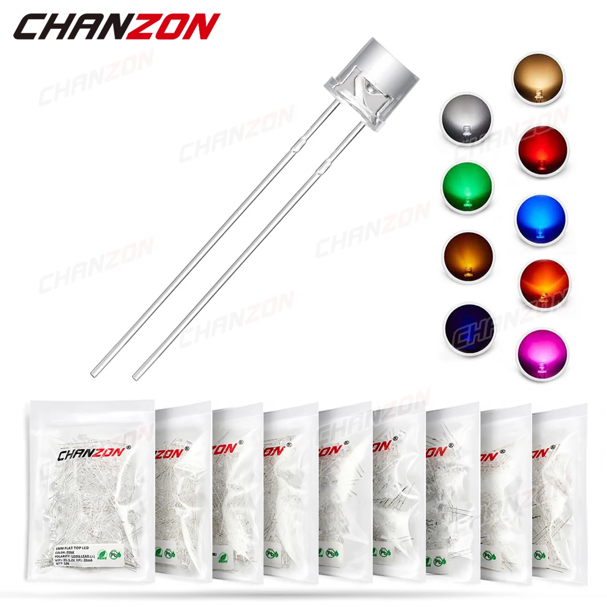 Светодиодные светоизлучающие диоды, плоский верх, теплый белый, красный, синий, зеленый, УФ, оранжевый, желтый, розовый цвет, лампы для светодиодных индикаторов сделай сам, 100 шт., 5 мм