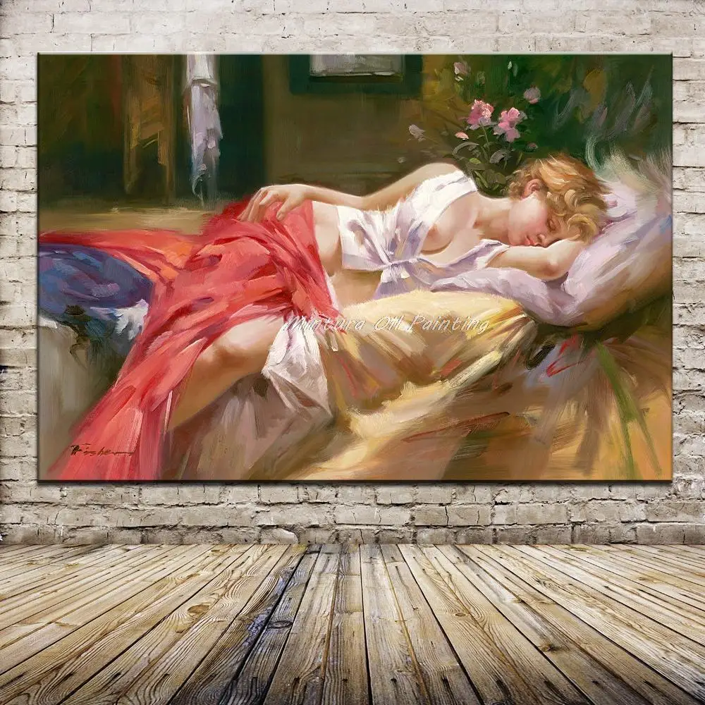 Картина маслом, Спящая Красивая Обнаженная девушка, Европейский Портрет, напечатанная картина на хлопке для спальни, гостиной, настенное искусство, домашний декор