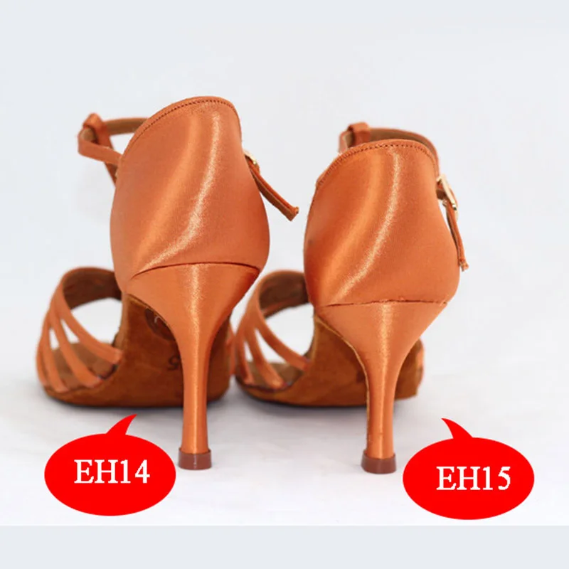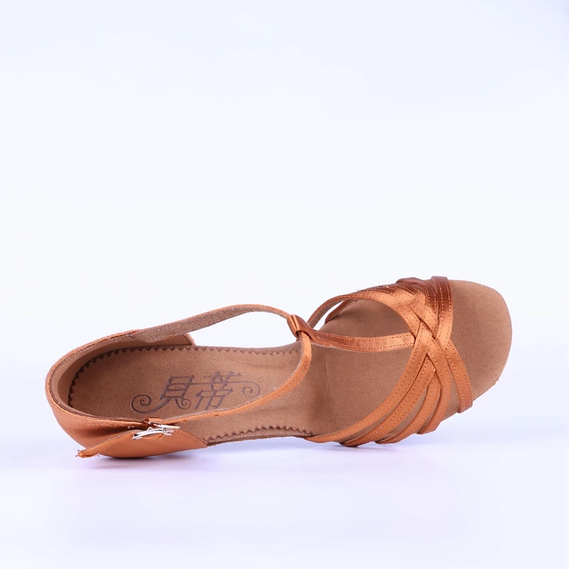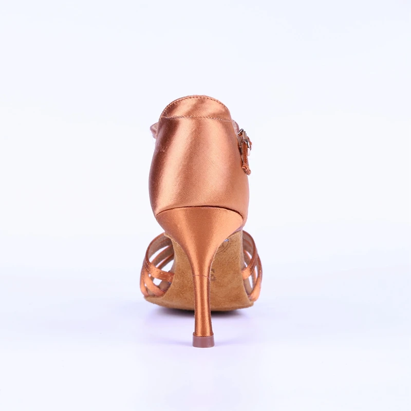 Женские туфли для латинских танцев BD217, темно-коричневые атласные туфли с кожаной подошвой на тонком высоком каблуке, женские Бальные Танцевальные босоножки туфли для танцев