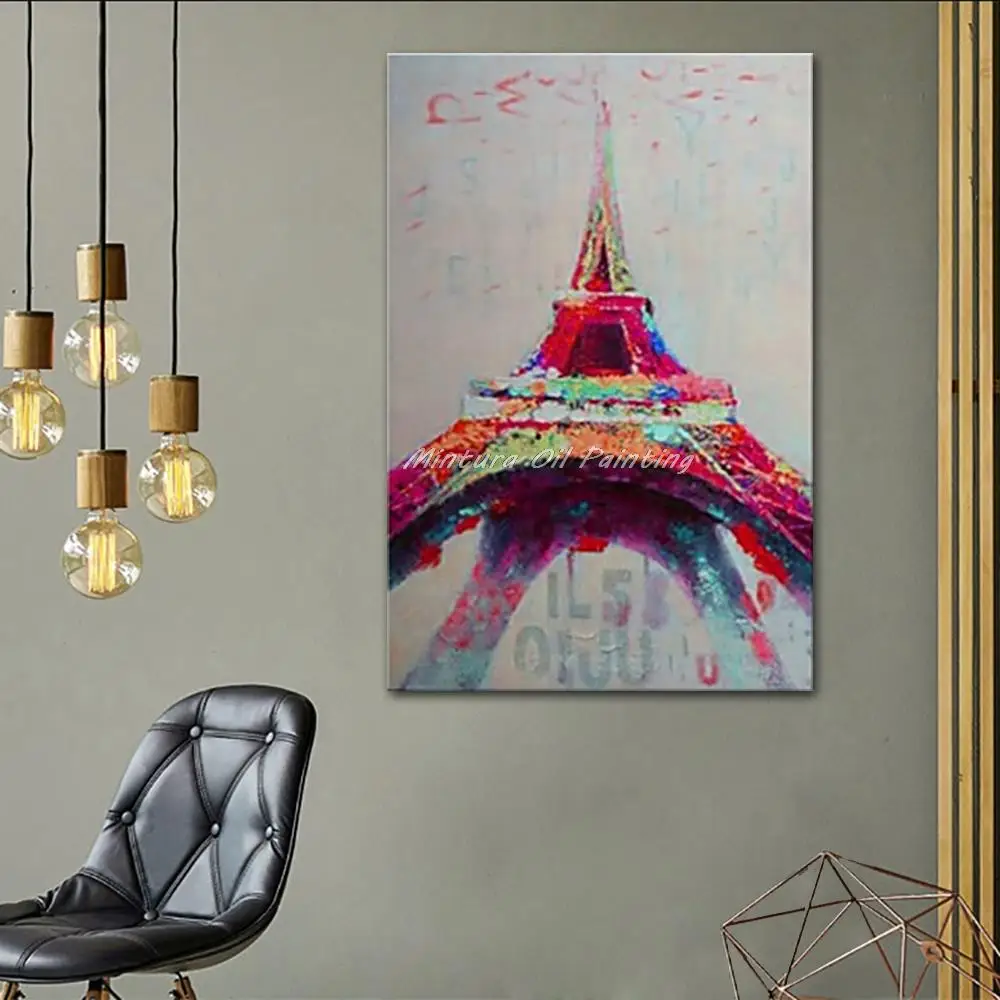 Mintura ручная роспись Эйфелева башня, картина маслом на холсте, современная абстрактная Настенная картина для гостиной, украшения дома и офиса