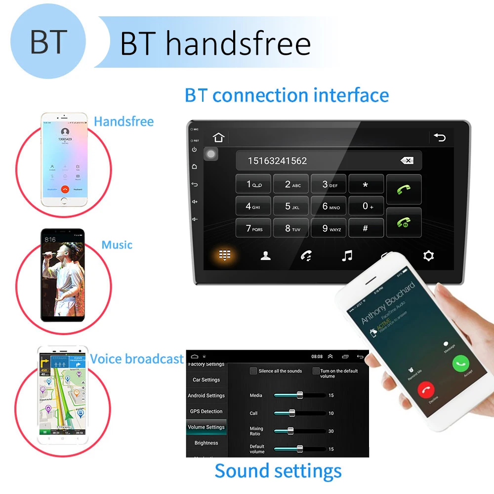 Автомобильный мультимедийный плеер Podofo 10,1 "/9" 7 "2 din Android, автомобильное стерео радио BT Audio Mirrorlink MP5 плеер с задней камерой