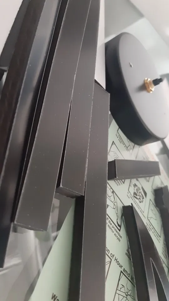 Классные часы! Уже брала такие чёрные. Точно такие же видела в розничном магазине за 5 000₽. Отметки времени Паралоновые, к ним клеются полированные пластиковые прямоугольники. Стрелки из мягкого металла. При этом смотрятся красиво и ходят без проблем. Но если куда-то приклеил (на обои например) уже не оторвать эстетично.