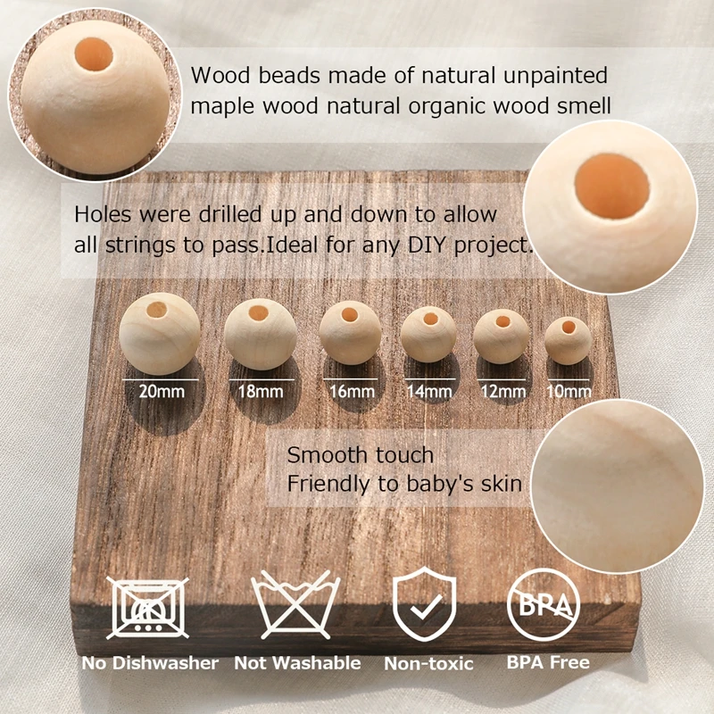 Бусины из бука для мамы и ухода за зубами, 10 шт.