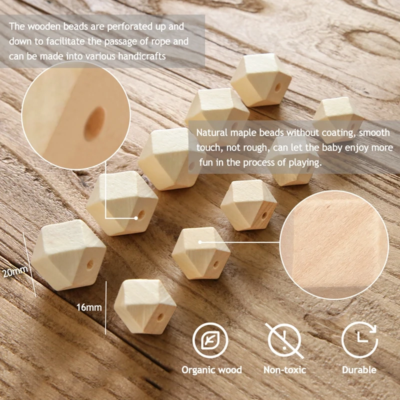 Бусины шестиугольные из бука для прорезывания зубов, 30 мм, 20 шт.,...