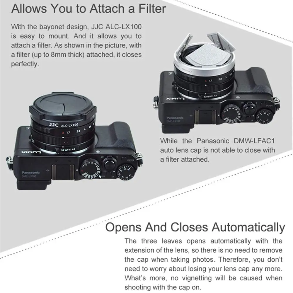 Автоматическая крышка объектива JJC для Panasonic LUMIX DMC-LX100 DMC-LX100II LEICA D-LUX (Typ 109) D-LUX7 Защитная крышка для DMW-LFAC1
