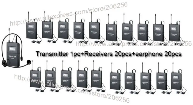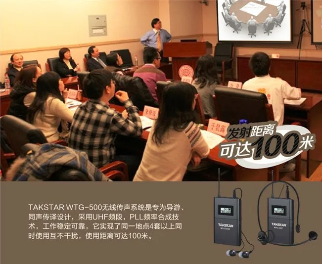 Высокое качество Takstar WTG-500 UHF PLL Беспроводная система гида тура голосовое устройство учебные наушники 1 передатчик + 20 приемник + 1 микрофон + 20 наушников Бесплатная доставка