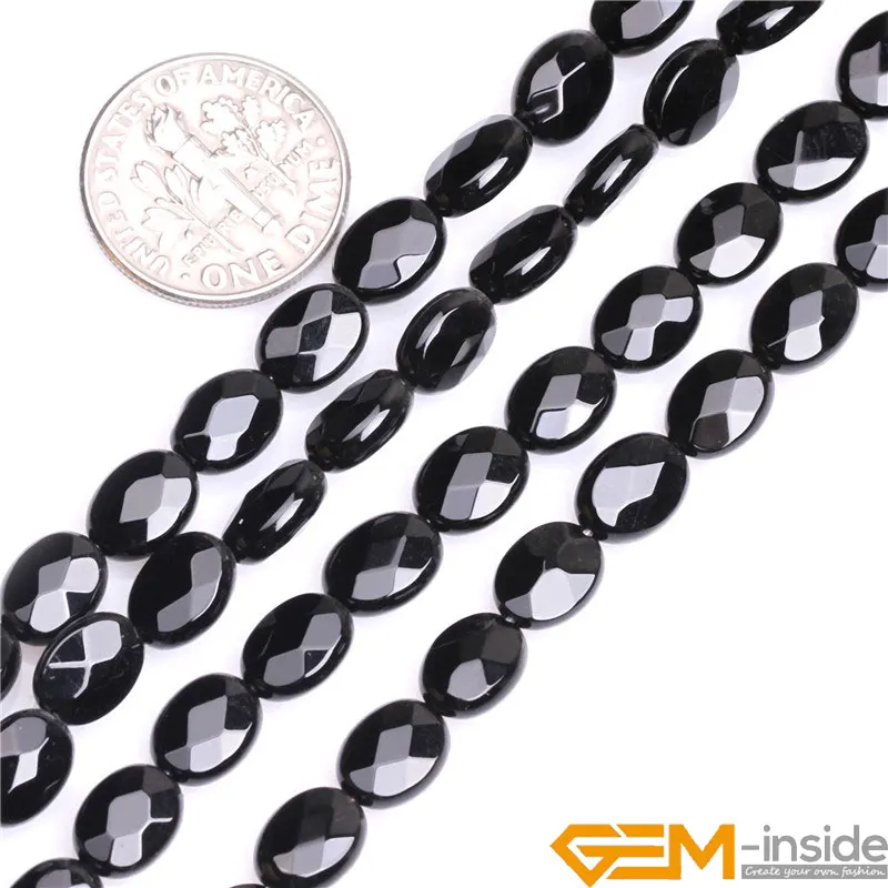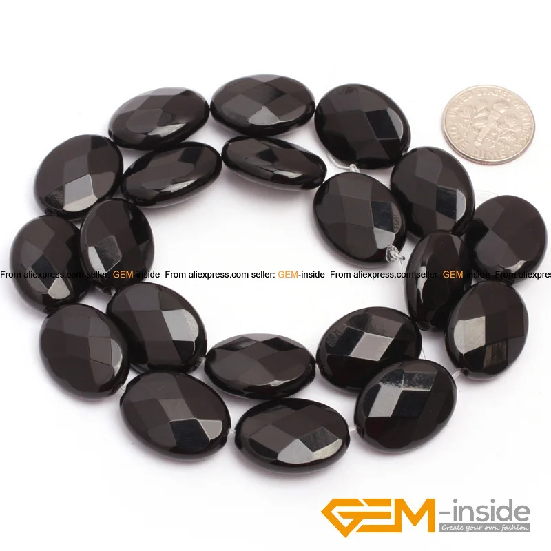 Плоские Овальные граненые бусины из черного агата класса АА, бусины из натурального камня сделай сам для изготовления ювелирных изделий, нитка 15 дюймов