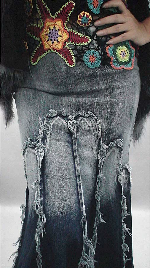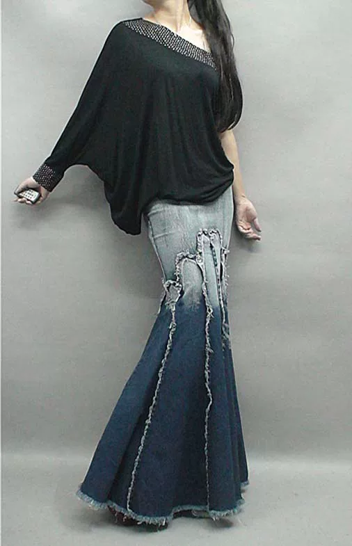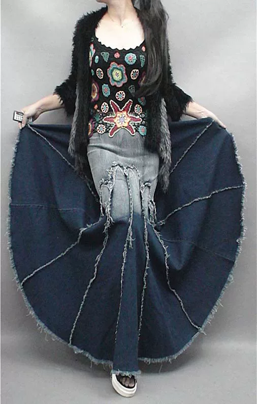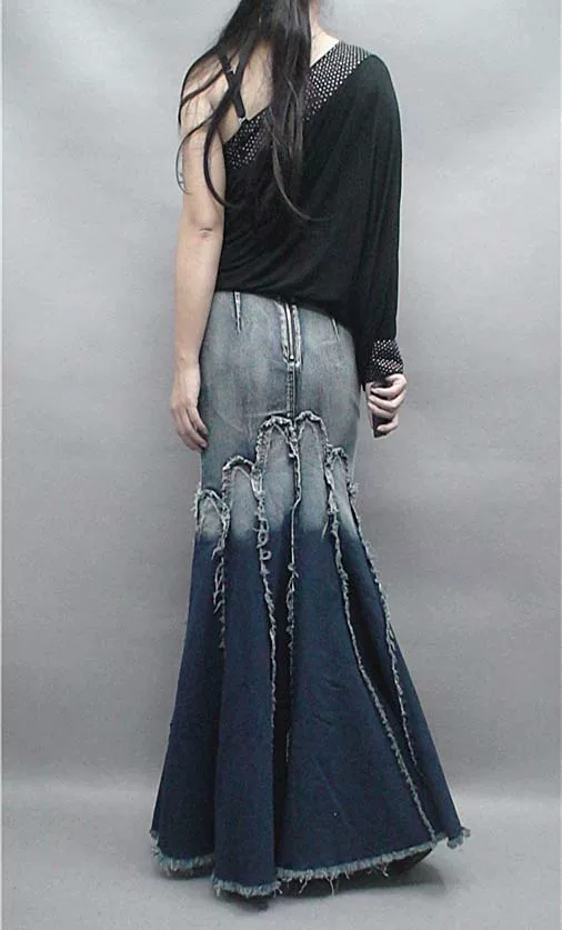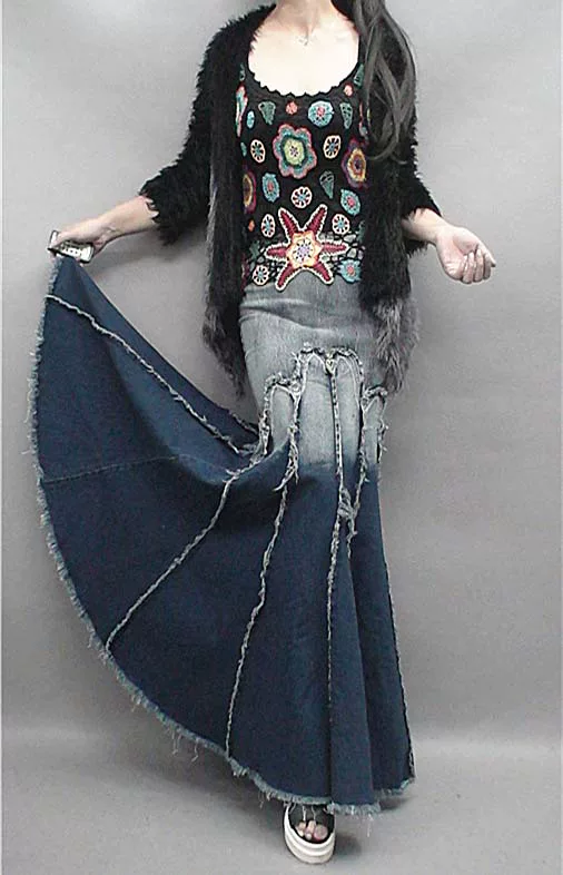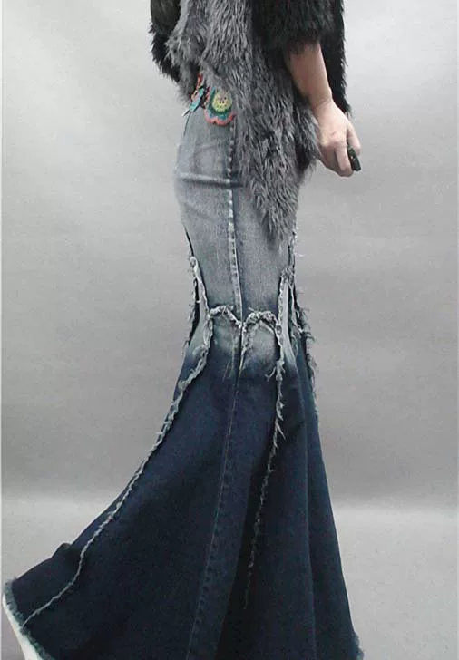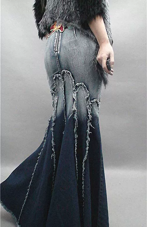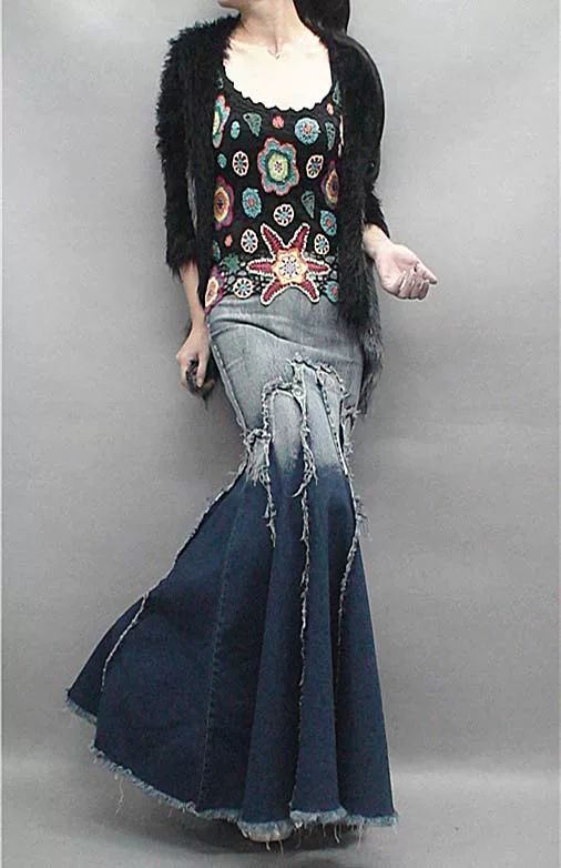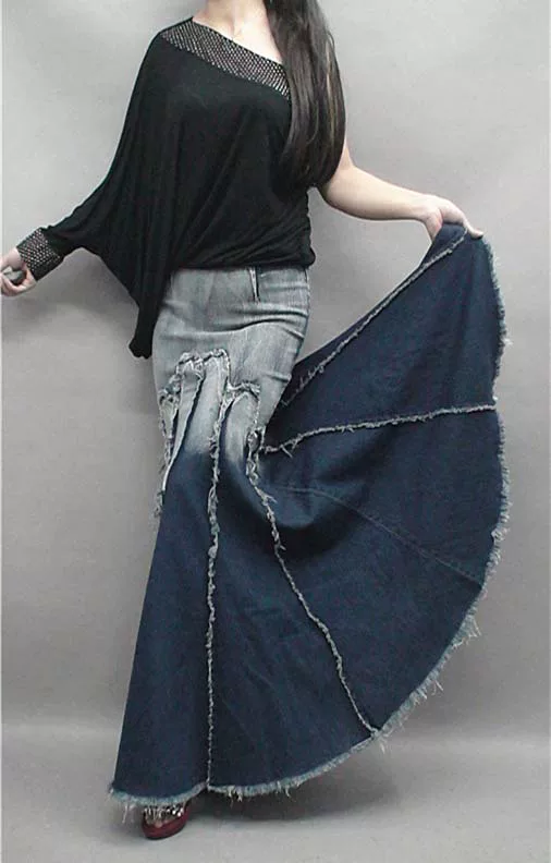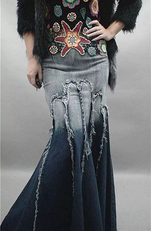 Женские джинсовые юбки в пол, длинные юбки из денима с кисточками в стиле русалки, большие размеры, 2019