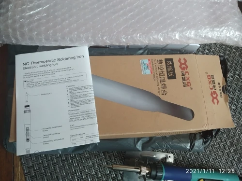 Доставлено за 1месяц, отлично работает проверил. Заказывал без комплекта жал только с подставкой, жала есть. Все пришло хорошо упакованным в противоударную пленку не помято работает отлично, набирает температуру быстро, я доволен, Спасибо продавцу!