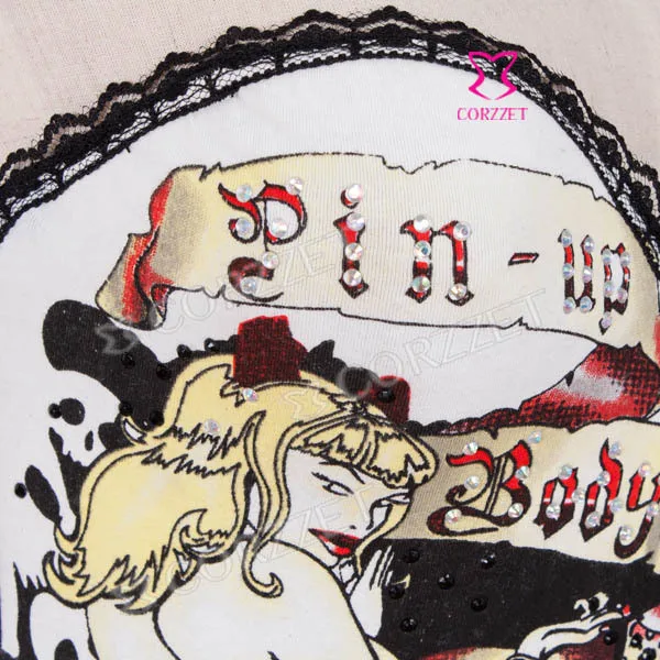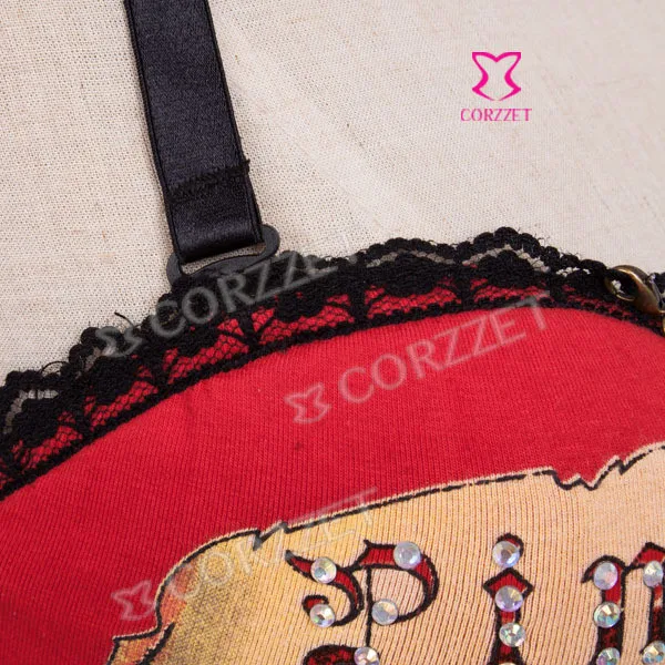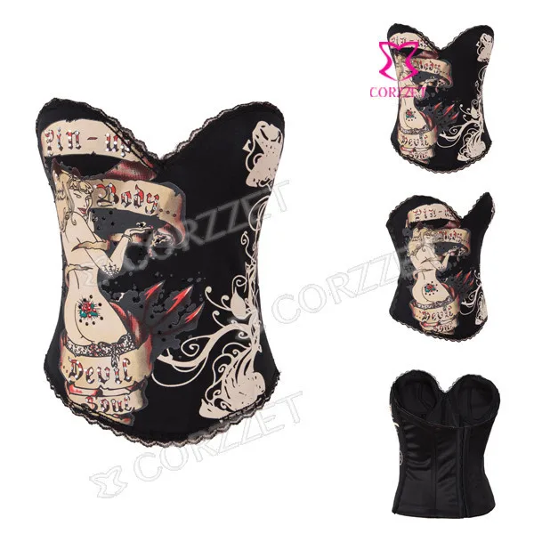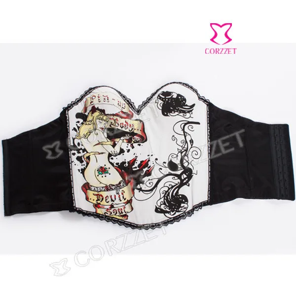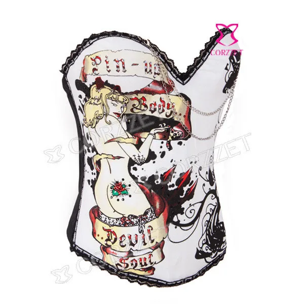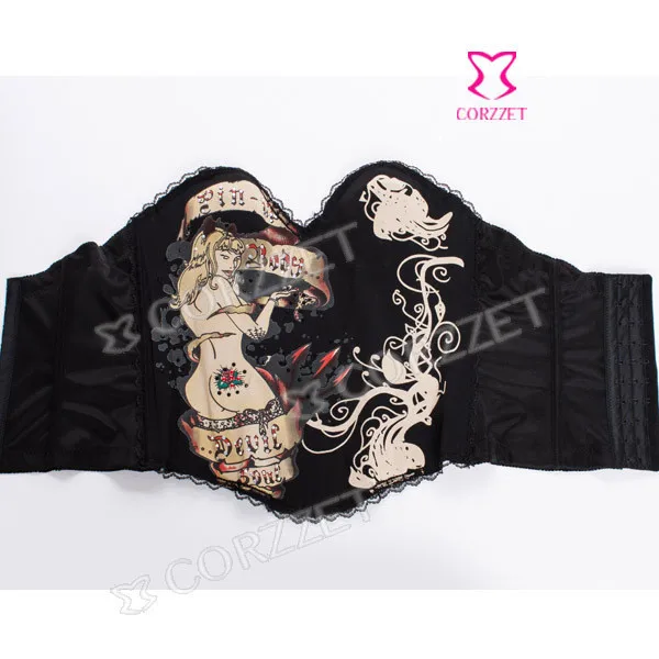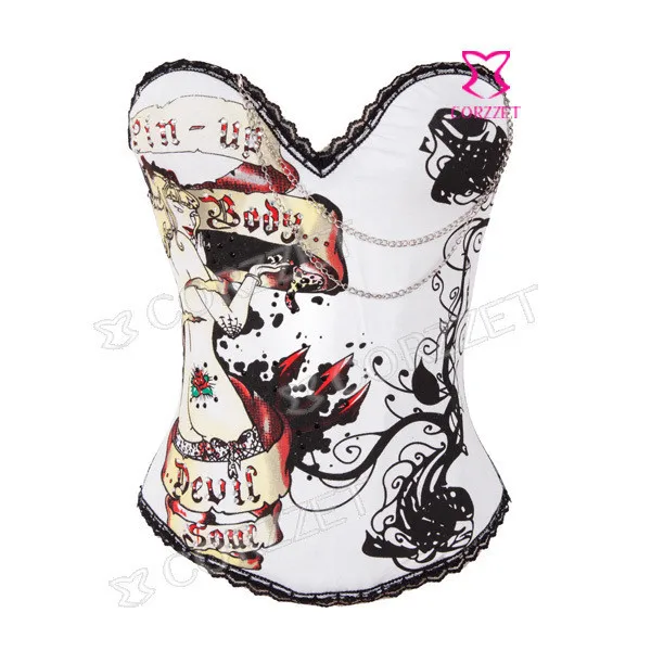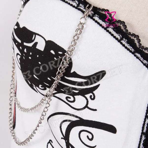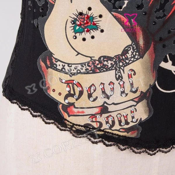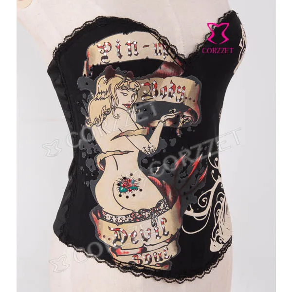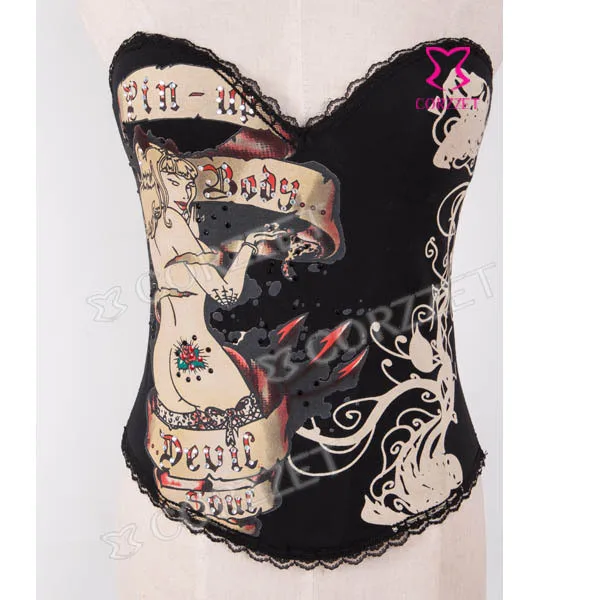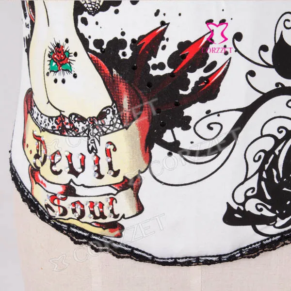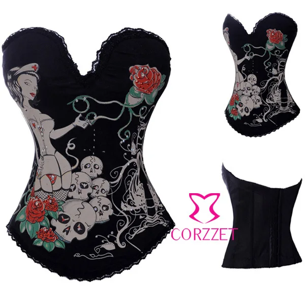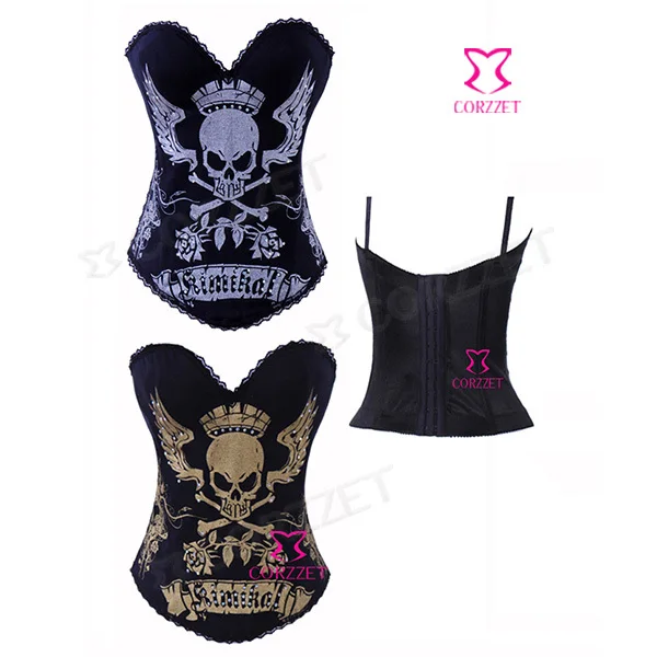 Корсет из бурлеска и бюстье на косточках с изображением черепа, чашечки из хлопка