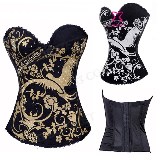 Корсет с цветочным принтом и Фениксом, Бюстье и корсет из хлопка, корсетный сексуальный корсет