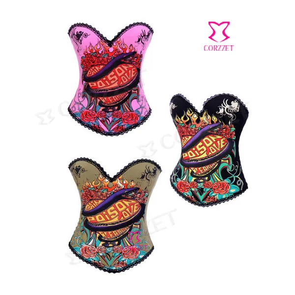 2269 # сексуальный цветочный/сердечный принт, готический корпит, Seetheart, чашка на косточках, хлопковый корсет