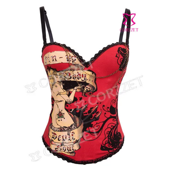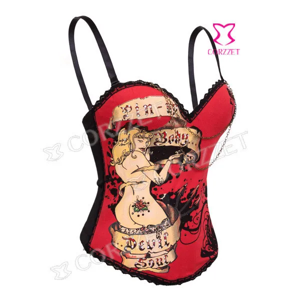 Хлопковый корсет с сексуальным обхватом груди, кружевной отделкой, чашечками на косточках, напечатанным голым женщинам. Три линии крючка на спине делают Размер регулируемым. Материал с волшебным принтом делает его особенным и сексуальным.GОтик Корсет Бюстье, корсет и бюстье,