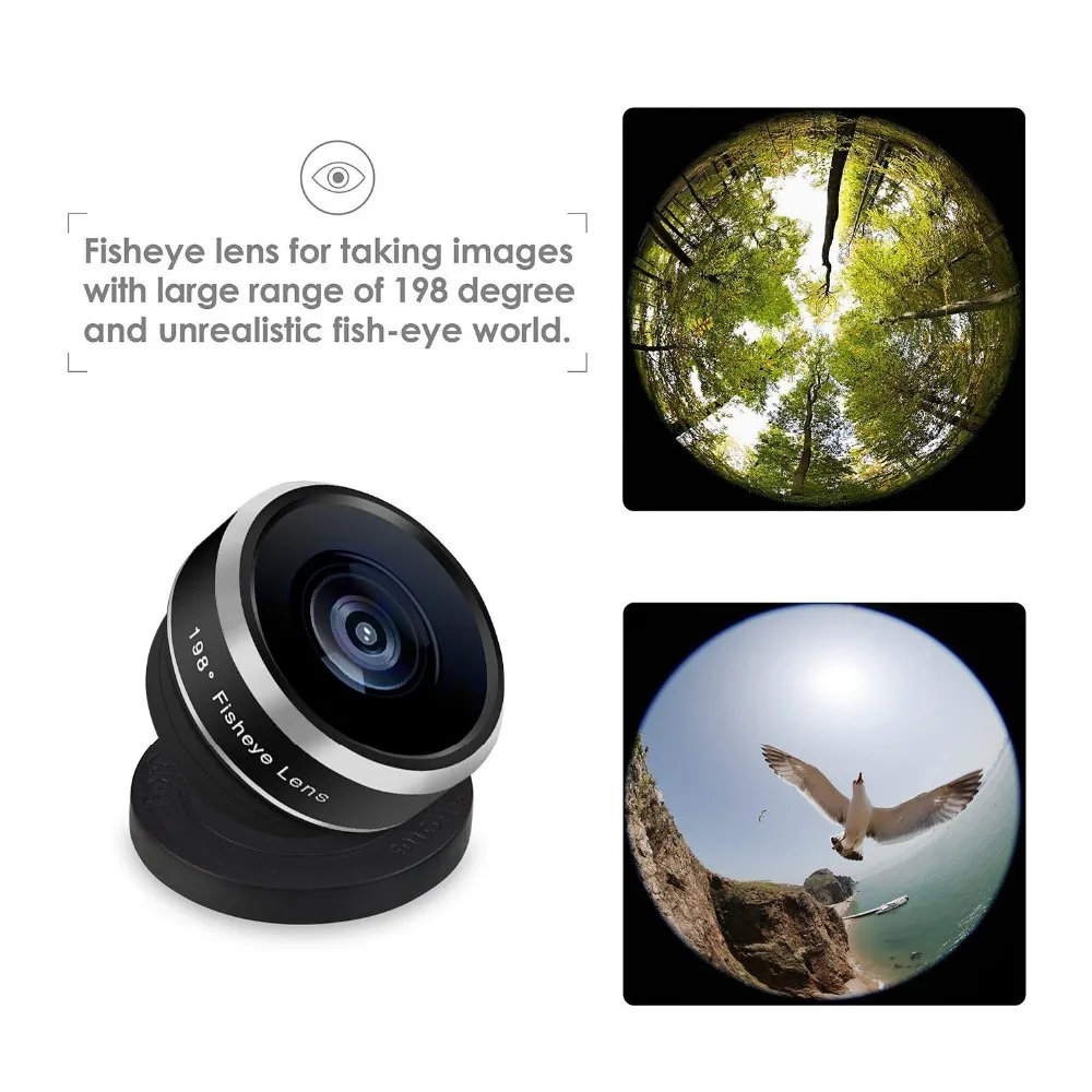 Набор объективов Apexel для iPhone, Samsung DG5, 5 в 1: объектив рыбий глаз + широкоугольный объектив 0,63x + макрообъектив 15x + телеобъектив 2X + объектив CPL