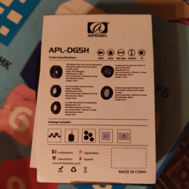 Хорошие объективы, сделаны качественно, соответствуют описанию. На некоторых помимо рыбьего глаза прослеживаются края, но это не критично и не портит сильно картинку. Салфетка в комплекте.
