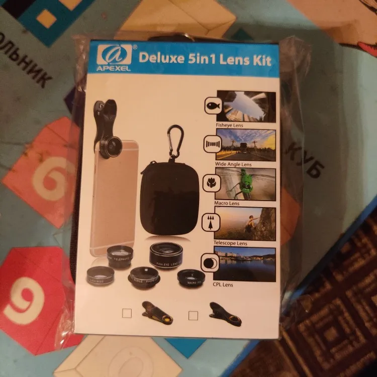 пришло достаточно быстро, компактный наборчик. заказала только из-за макролинзы, она идёт не отдельно, а накручена с другой линзой, и открутить из друг от друга иногда сложно. через некоторое время, раз на 5-ый при откручивании первая линза отвалилась от второй, итог не совсем исправная линза, но главное,что именно макро в руках не рассыпалась. прищепка очень удобная, хорошо держится на телефоне. хорошо бы,если макролинза шла отдельно. насчёт других линз, ну особой разницы при съёмке я не заметила, будто бы их и нет, ну кроме широкоугольной и рыбьего глаза, они свои функции выполняют. в целом набор не плохой.