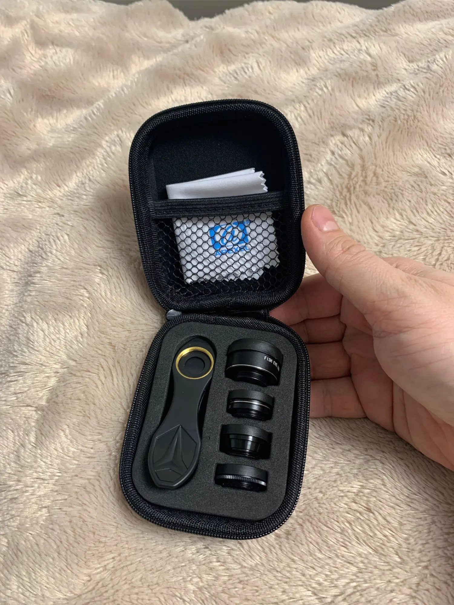 Потрясающе! Идеально подходит для моей поездки в Европу! Чехол очень красивый, и каждая линза имеет небольшую силиконовую крышку для его защиты! Так стоит своих денег! И хорошо упакованы! Прекрасный подарок!