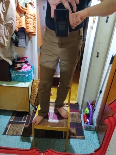 В целом клевые штаны. тонкие, на лето и тёплую осень/весну. ткань тянется, но не сильно, не прям стрейч как ожидалось. муж носит размер л русский, но тут заказал м. село неплохо, но в длинне сантиметра 2 не помешало бы. размер соответствует заявленному по таблице мы мерили. цвет красивый, не маркий, серо зеленый, не теплый хаки. еще крой немного странный, будто клеш идет от калена, но это наверное для удобства подразумевается, штаны то тактические. В целом в городской лук вписываются. из минусов отмечу что швы не все прострочены, нитки есть, и небольшая потертость на штанине. для 1500 мне кажется можно и получше сшить. да, рост 168см, для тех кто выше будут явно корлотковаты.