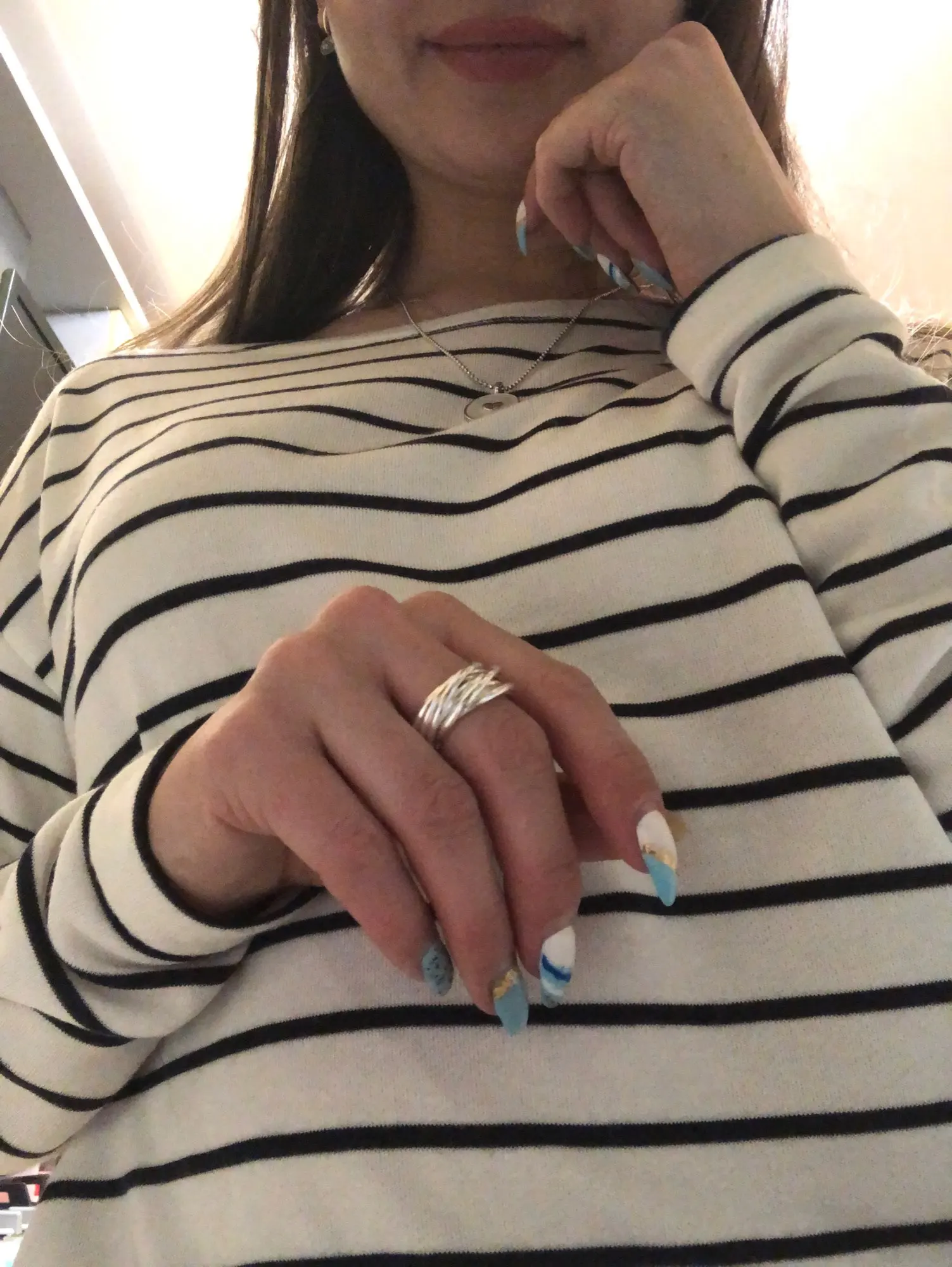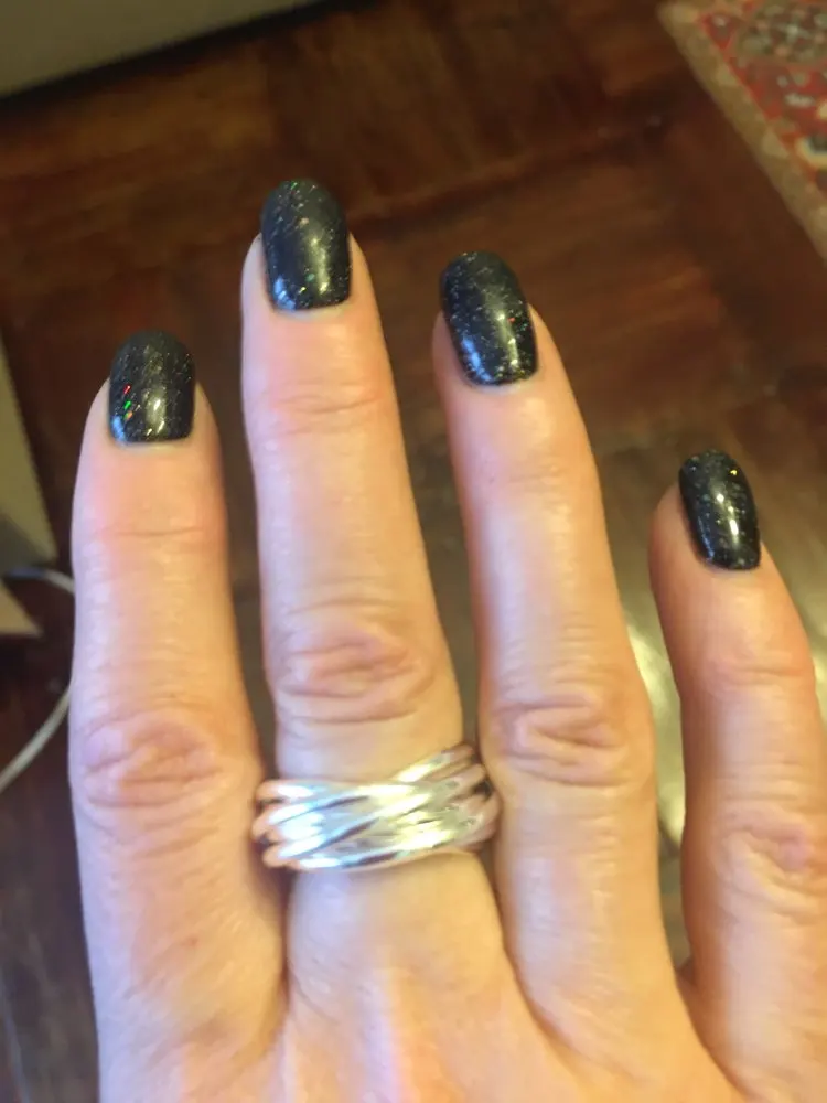 Смотрится симпатично на любом пальце!)) Брала его в пару к своему аналогичному серебряному, приобретённому в СПб. Если близко рассматривать это колечко, небольшие огрехи видны, мне пришлось убирать напильником заусеницу в месте стыка одного из 9 колечек, чтобы не цепляло. В остальном, снаружи оно выглядит довольно эффектно и, что интересно, размер 8, не смотря на большое количество "перекатывающихся" меж собой обручей, подходит на наш 18-й даже со "свободой облегания".