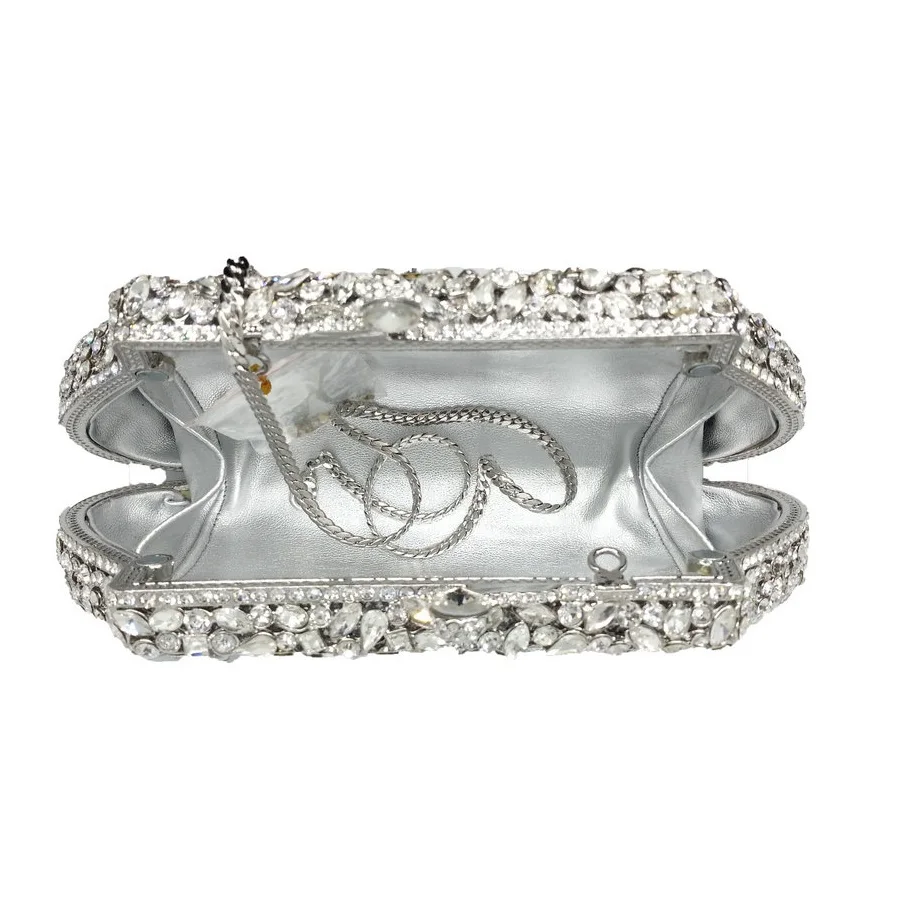 Boutique De FGG Цветок Корона минодьер клатч серебряный кристалл вечерняя сумочка женские Вечерние Сумка на выпускной бал свадебные клатчи Свадебный Кошелек