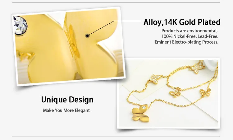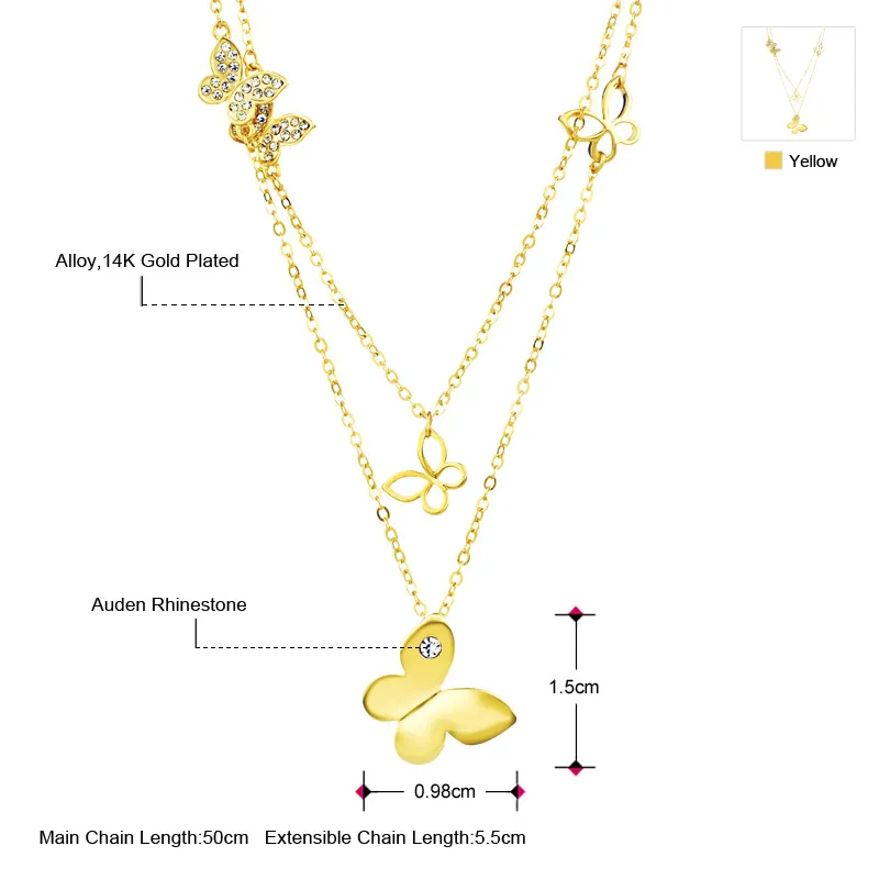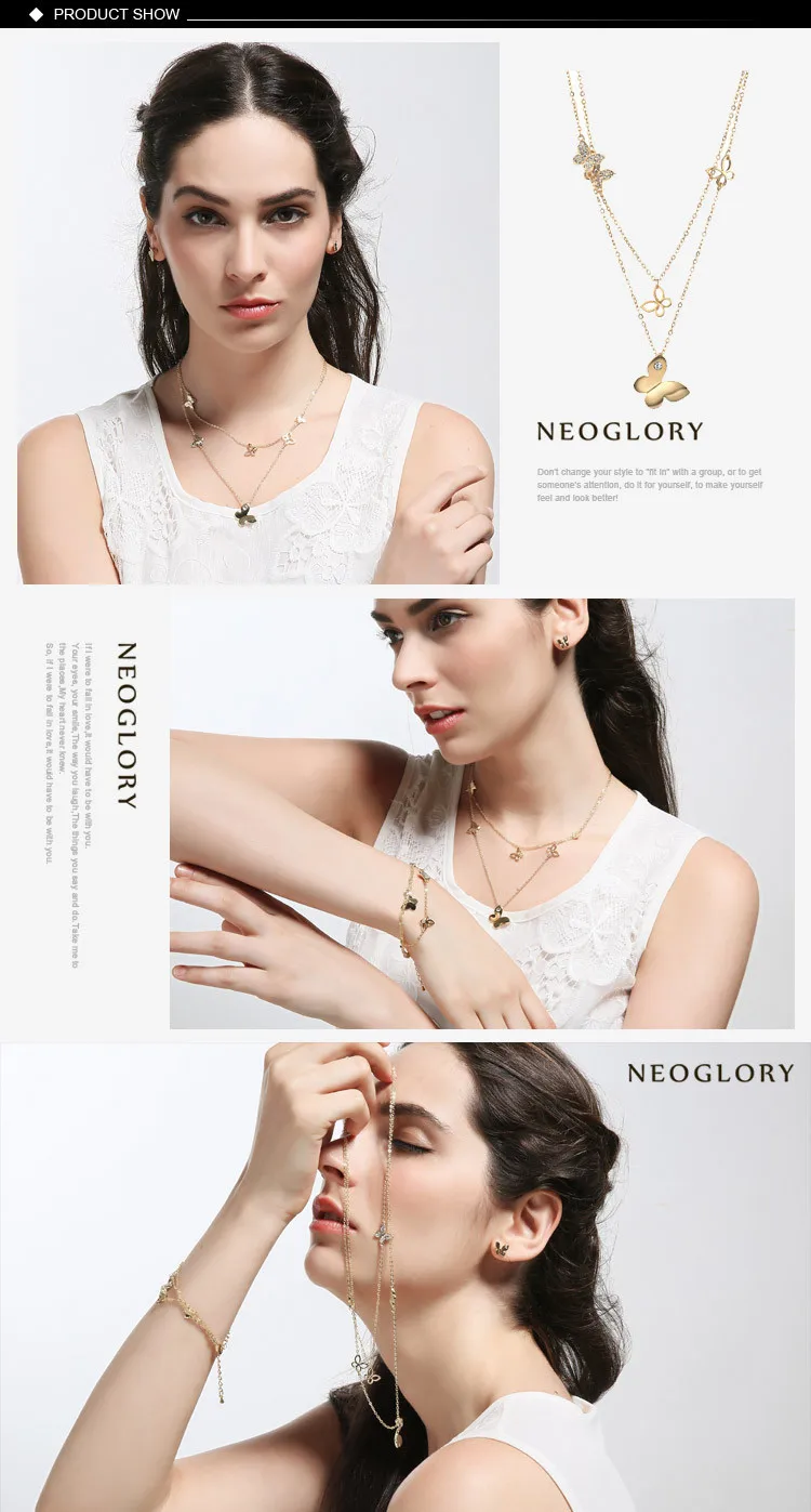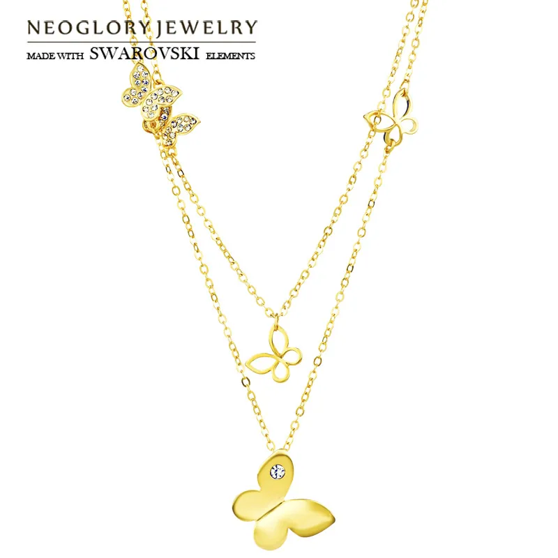 Neoglory Австрия разы Длинное колье с подвеской изысканный дизайн бабочки светильник-желтого золота для модных женщин брендовые ювелирные изделия