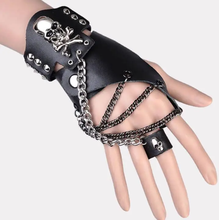 Перчатки унисекс из натуральной кожи, с заклепками, в стиле хип-хоп