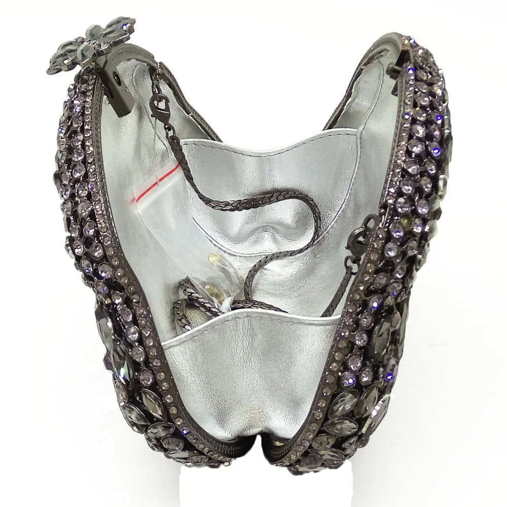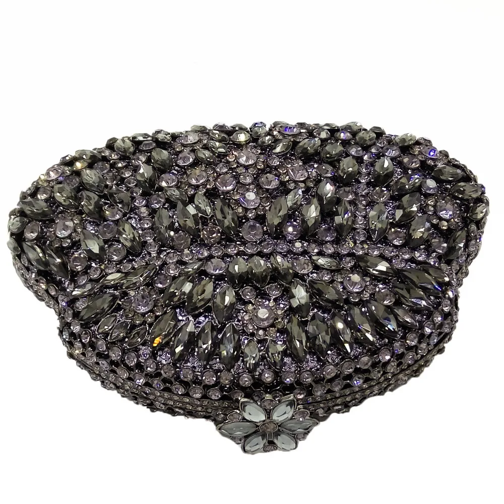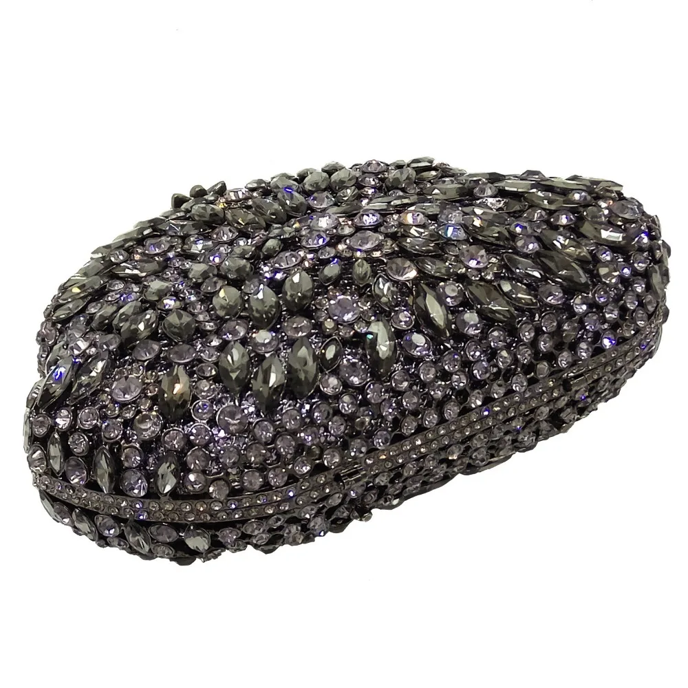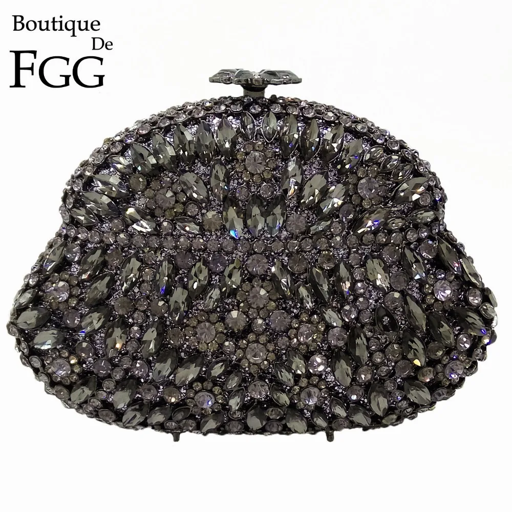 Женский Вечерний Клатч Boutique De FGG, металлический жесткий чехол с серым кристаллом, клатч со стразами для свадебной вечеринки, сумочка-кошелек