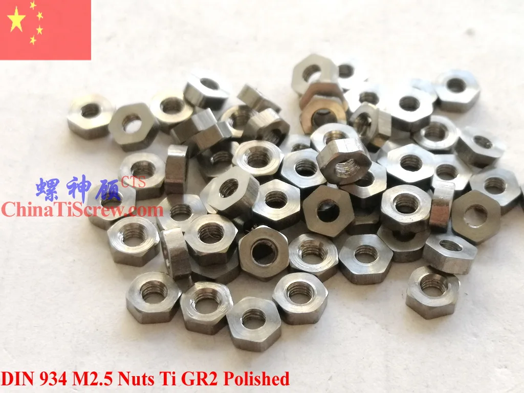 DIN 934 титановые гайки M1.6 M2 M2.5 M3 M4 M5 M6 Ti GR2 полированные