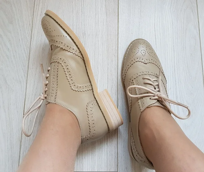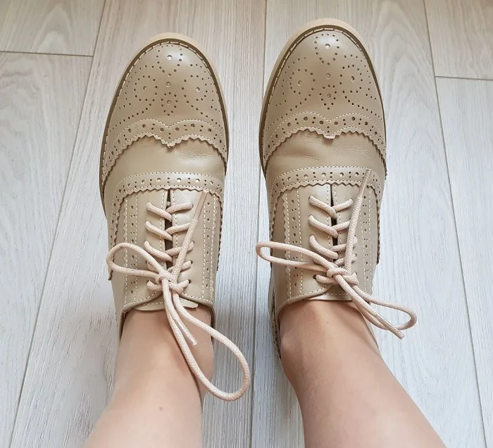 Super. Сверху точно кожа, внутри, не уверена. Стелька так точно резина. В общем материалом немного разочарована. А вот от исполнения в восторге. Шовчик к шовчику, ниточка к ниточке. Никакого торчащего клея и запаха. Маркировка внутри, размер, индивидуальный номер, чуть ли не время изготовления. Продавец согласился сделать индивидуальный заказ. Я хотела однотонные цвета нюд. Пожалуйста. Тут без вопросов 5 *. По размеру. Моя нога 24 сантиметра, узкая. Мне на пол размера велики, может и на размер меньше влезла бы. В общем они стандартной полноты, за счет шнурка, думаю и на полную ногу пойдут. Продавцу спасибо.
