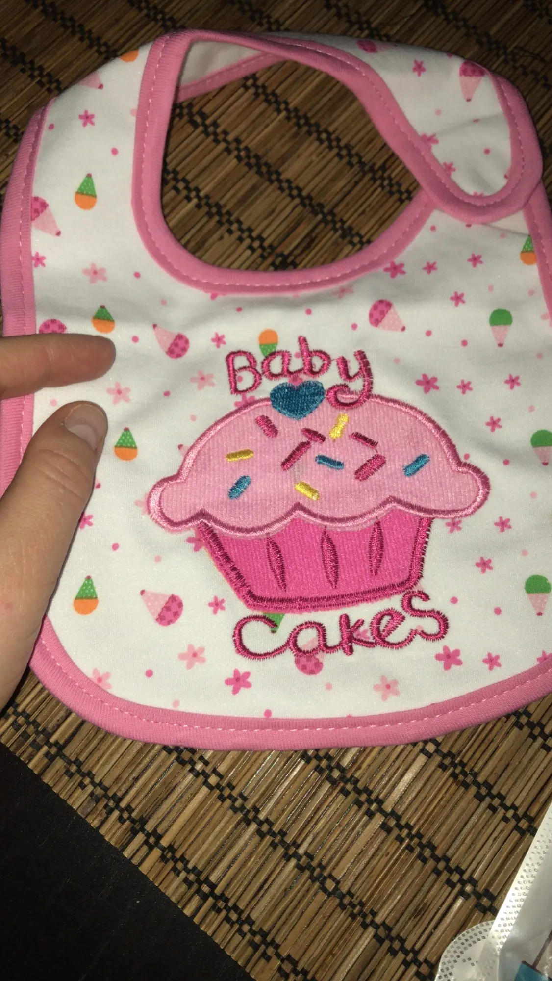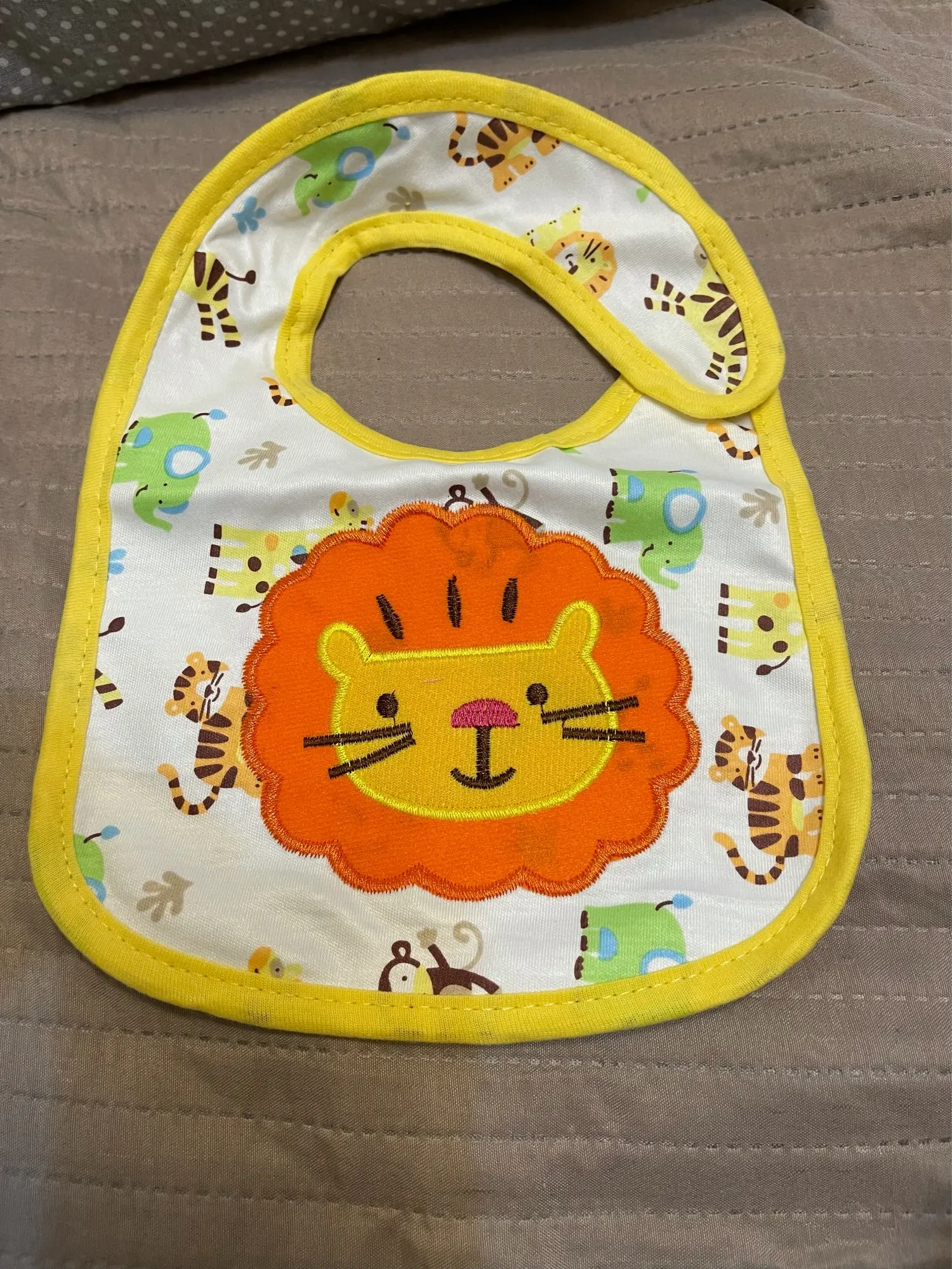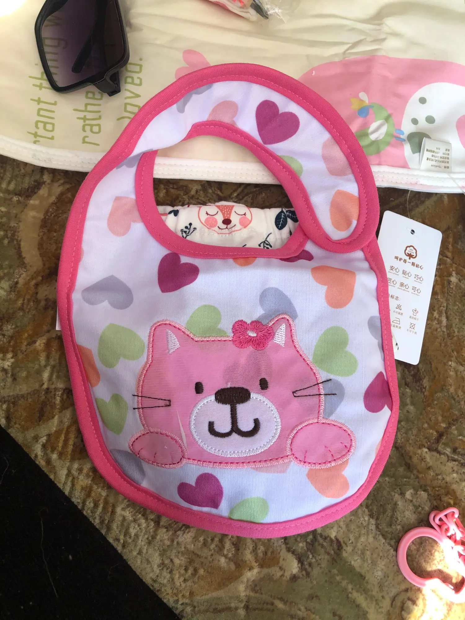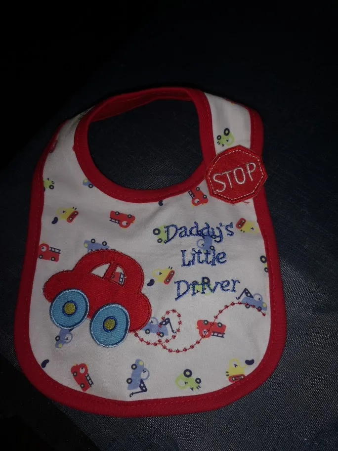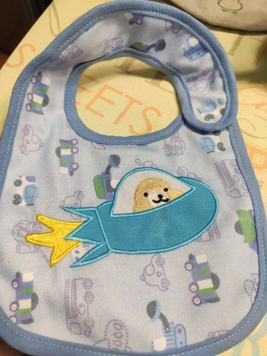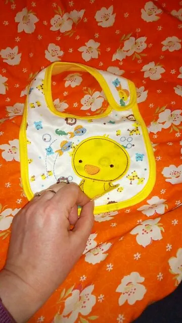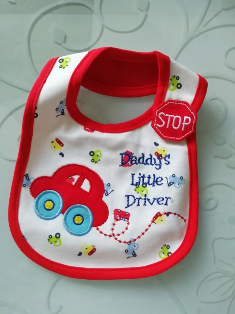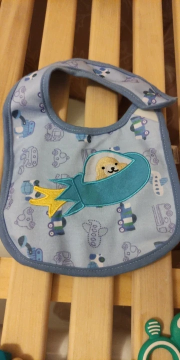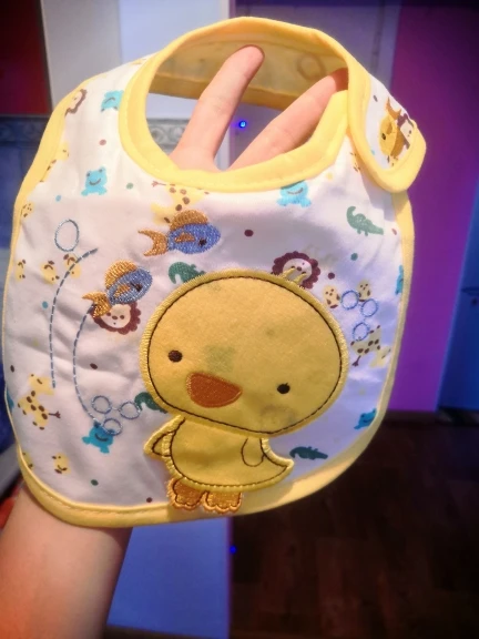 Хороший слюнявчик,долго ехал.но приехал.симпотичный)