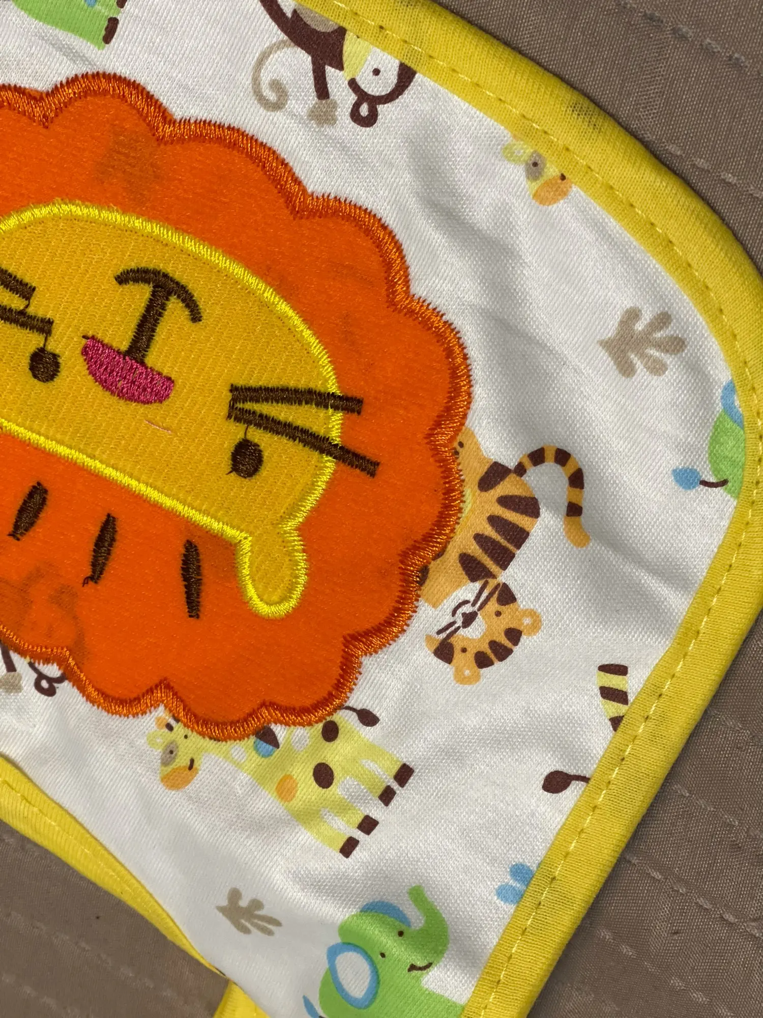 слюнявчик супер! качество на высоте, честно не ожидала) швы ровные, ткань приятная. выглядит в точности как на фото. однозначно рекомендую!