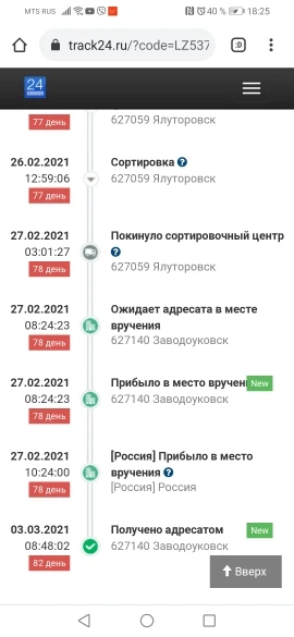 Страна: RU Доставка: Seller's Shipping Method 25.02.2021