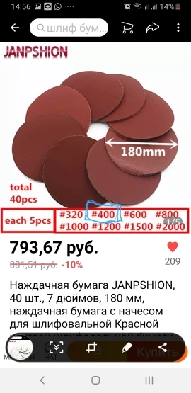 Бумага наждачная JANPSHION, 50 шт., самоклеящаяся, 60, 80, 180, 120, 180, 240