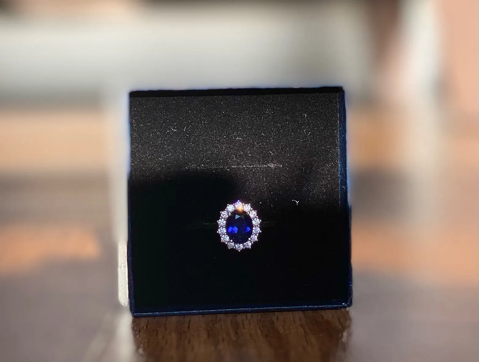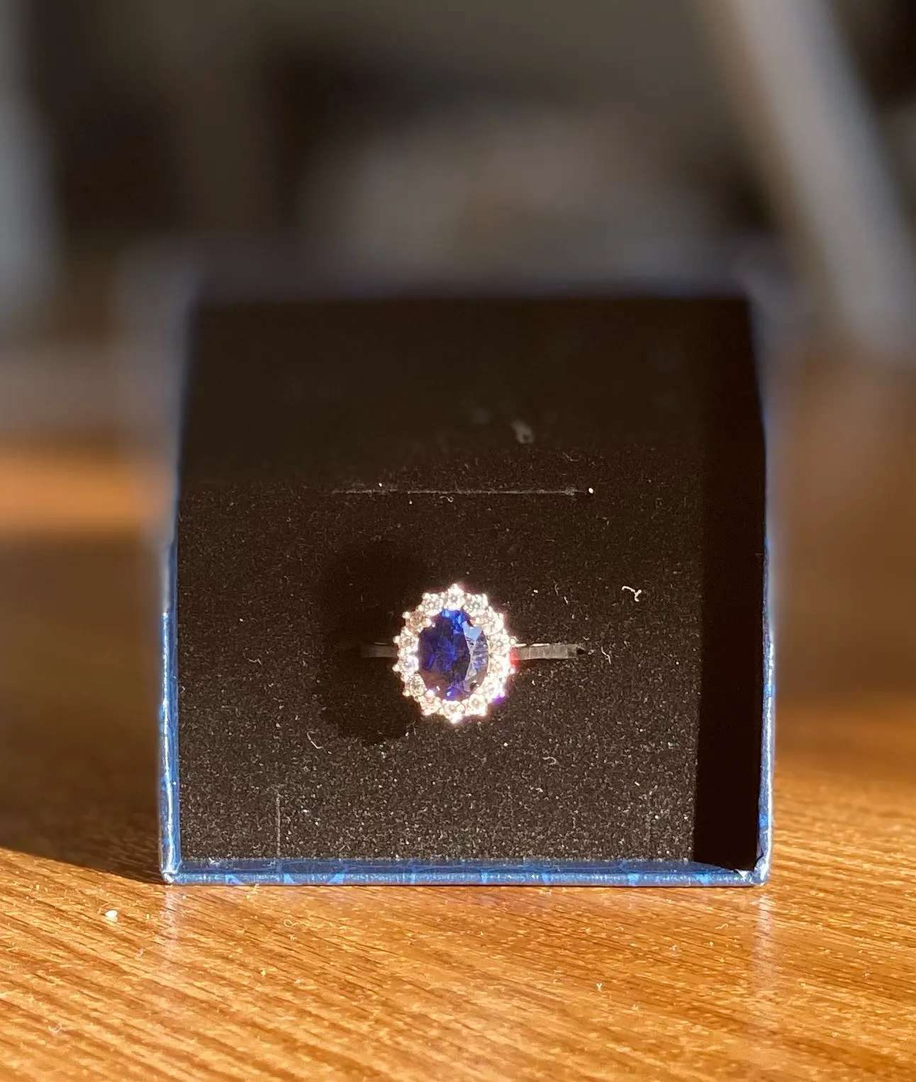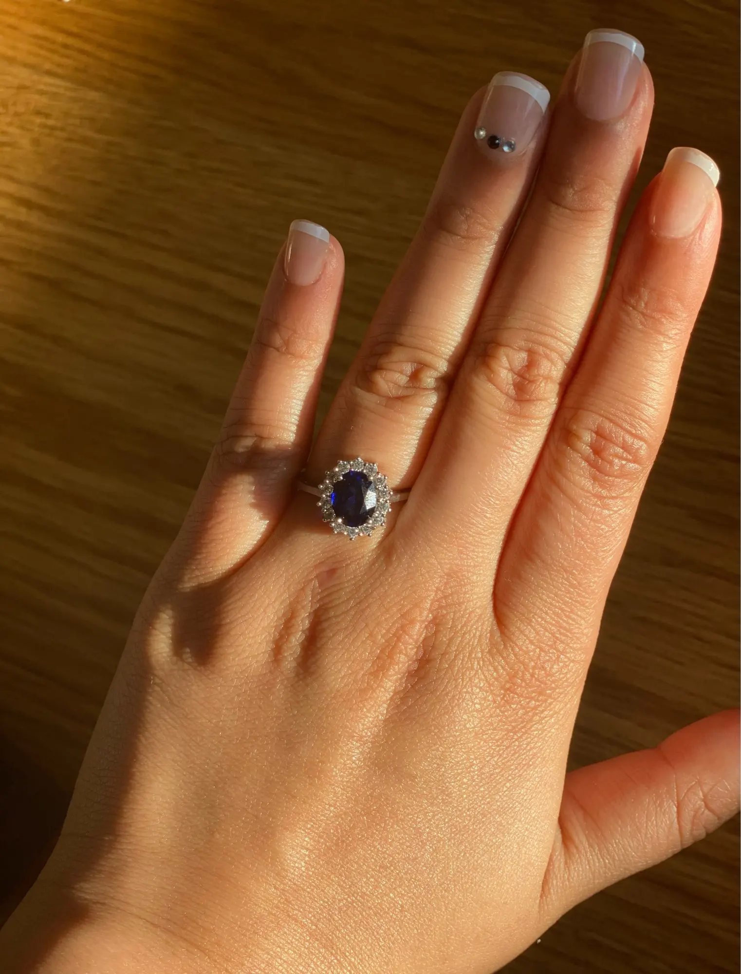 It is pretty. Probably it is a cz not a lab created sapphire as it does not come with certificate, however still shines beautifully. My size is a 5 and this feels a bit loose but I'm not sure if it is because of the ring or if my finger got thinner...Regarding the silver, we will se but it definitely seems legit.