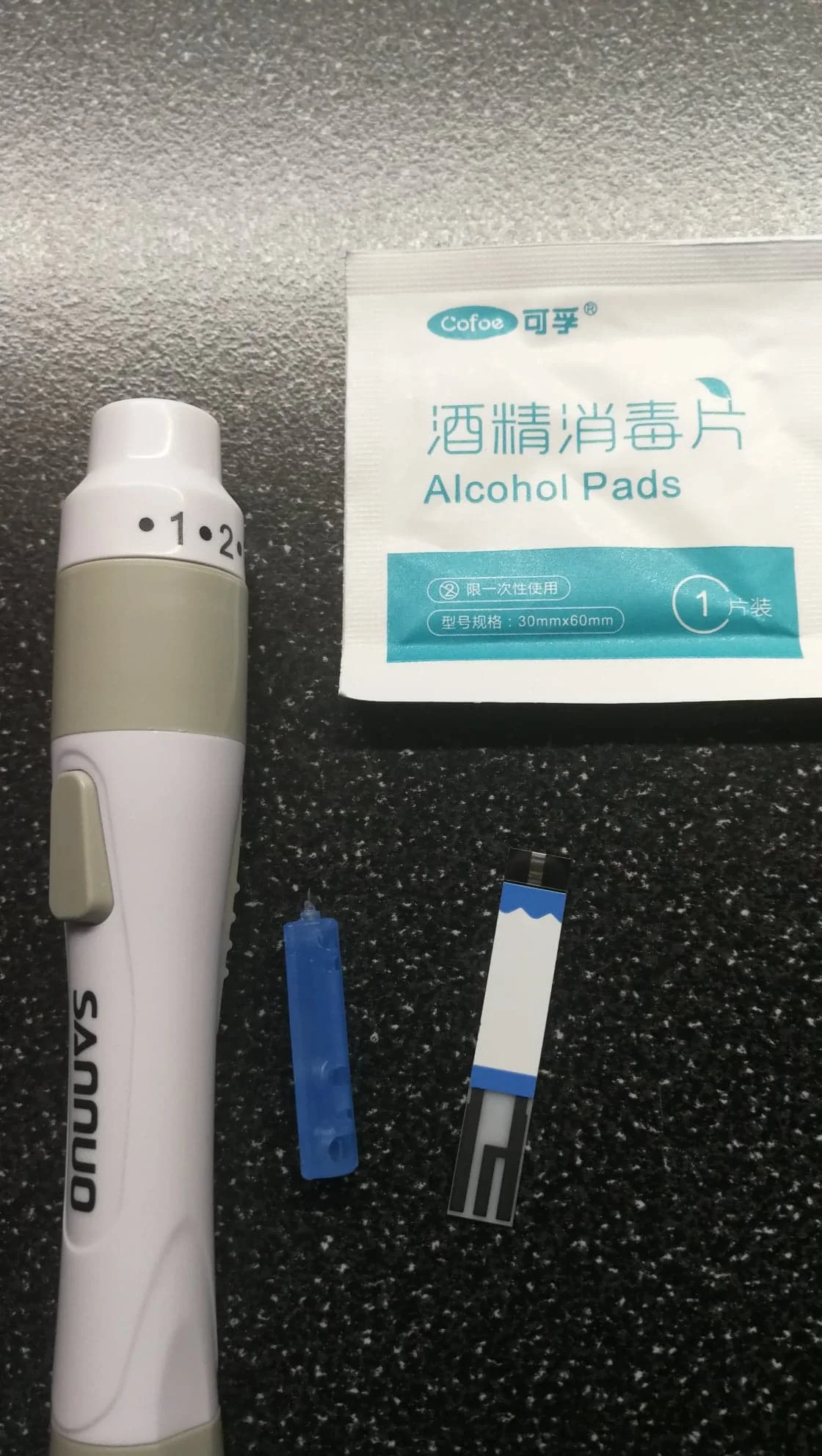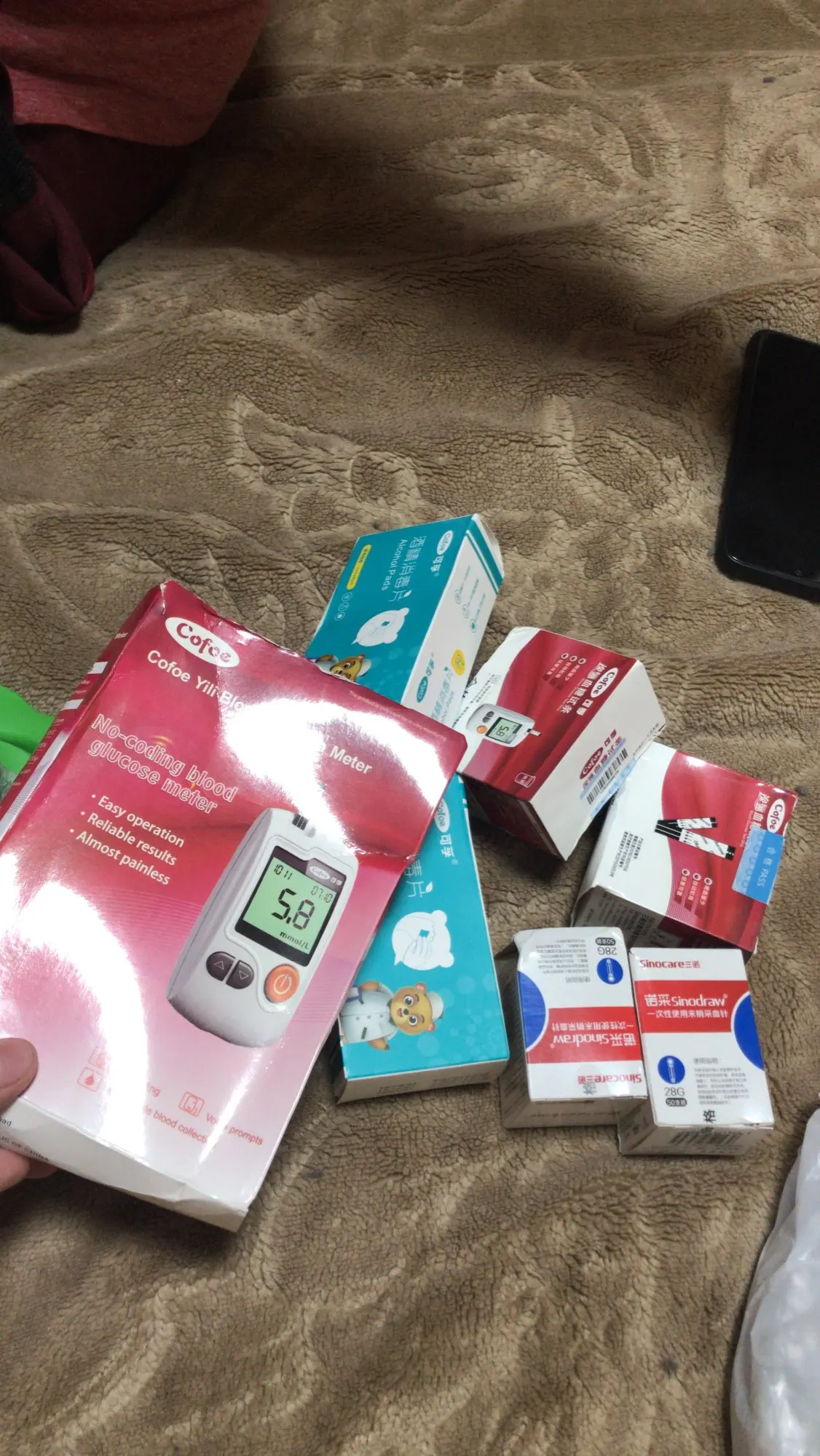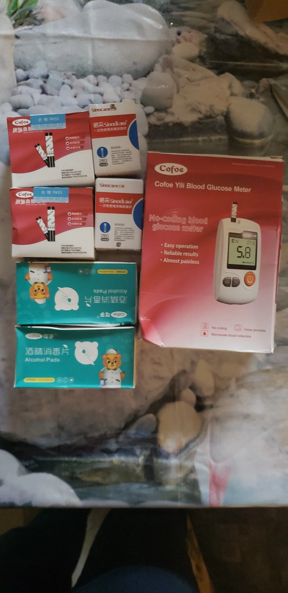 хороший глюкометр, русского языка нет, говорит на китайском, Но не напрягает, пришло всё что должно быть в комплекте, доставка быстрая транспортной компанией СДЭК, коробочки были немного помяты но всё пришло целым.