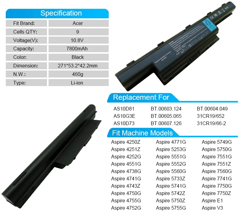 Новый аккумулятор для ноутбука acer Aspire 5742Z 7800G 5741G 5749G 5750Z 5750G 5755G 7551G 7560G AS10D73 BT.00607.126 31CR1965-2, мАч