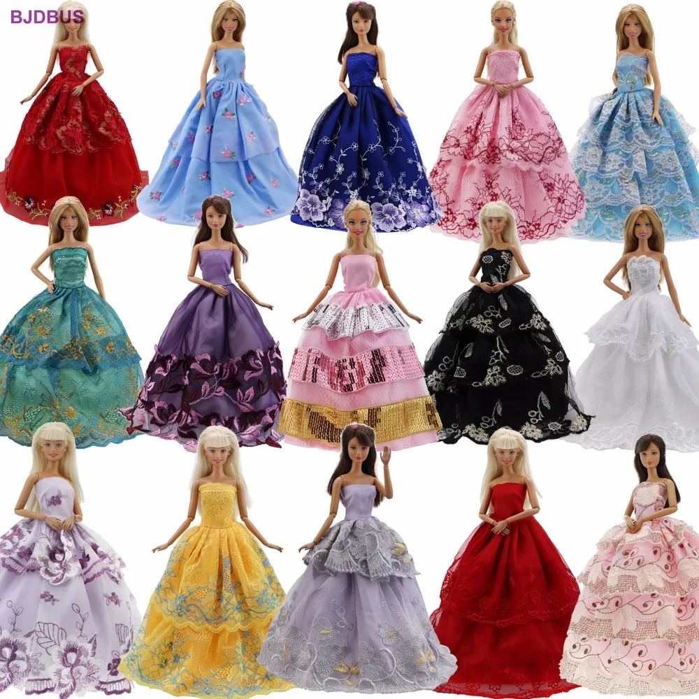 Партия 15 шт. = 10 пар обуви и 5 свадебных платьев Вечерние вечернее платье принцессы, милая Одежда для куклы Барби, случайные игрушки для девочек