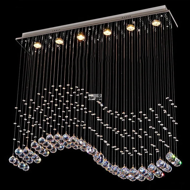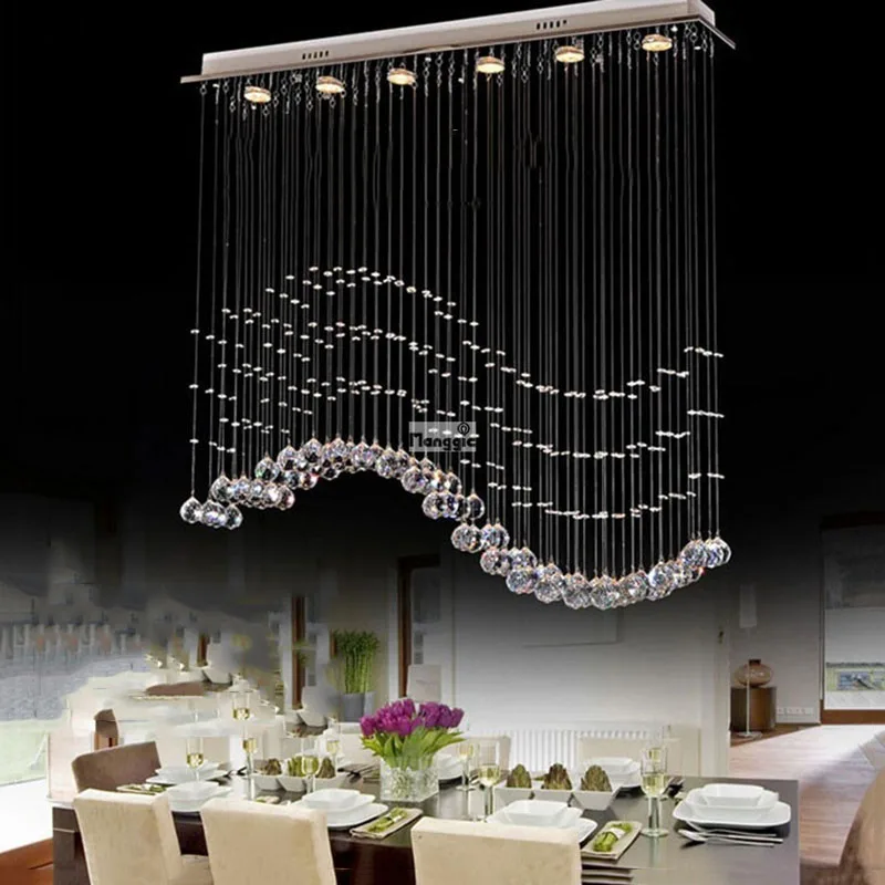 Современная хрустальная люстра с подвесным проводом, светодиодные волнистсветильник рустальные лампы, освещение для бара, ресторана, гостиной, лампа для коридора