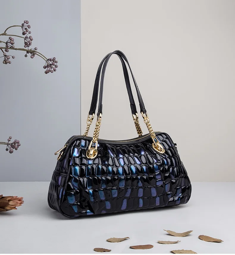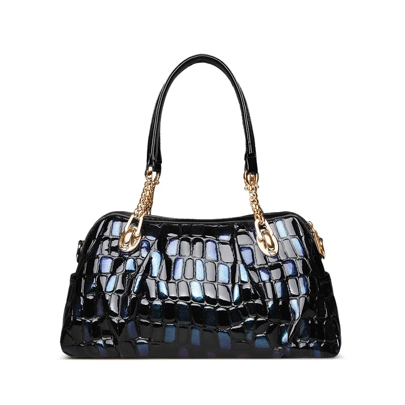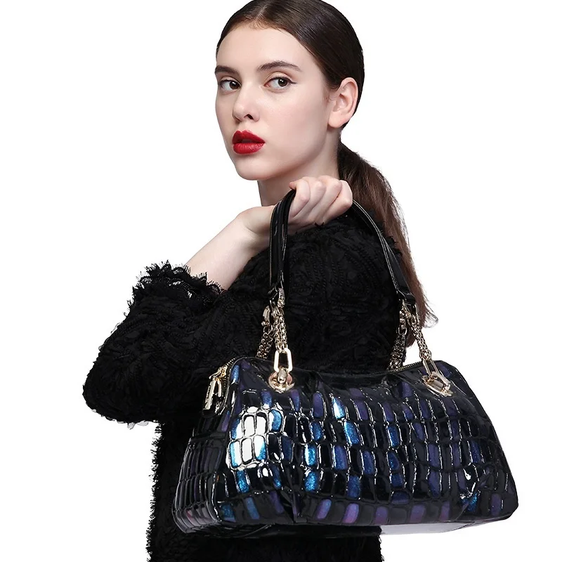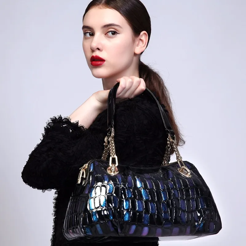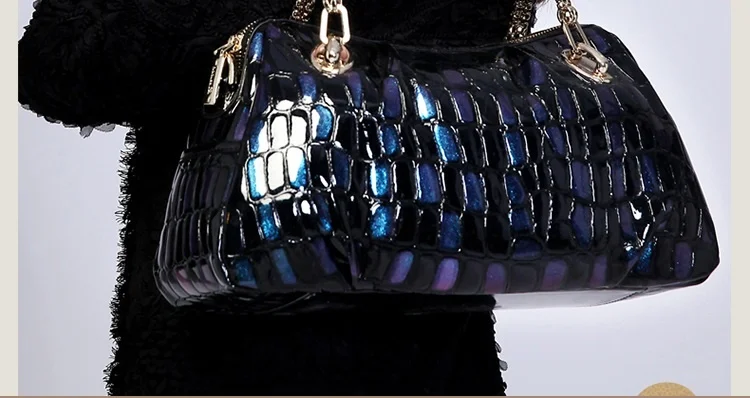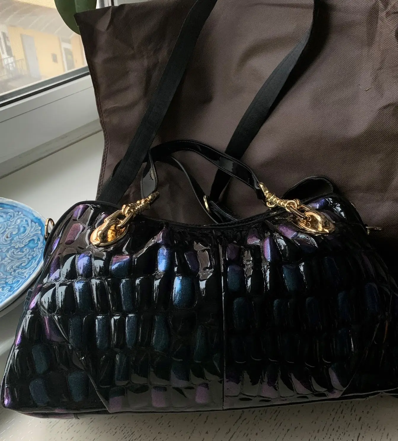 Сказать, что сумка шикарная - ничего не сказать! Не большая, но и не маленькая. Вместительная. При разном освещении отливает то синим, то фиолетовым, то зеленоватым. Основной цвет чёрный. Пришла быстро, упакована хорошо. Единственный, на мой взгляд, маленький недостаток, длинный ремешок не весь кожаный, на тканую сторопу полоса кожи пристрочена. Хотя по модели могли бы и полностью кожаный ремень сделать. Хотя в целом, всё просто супер! Рекомендую