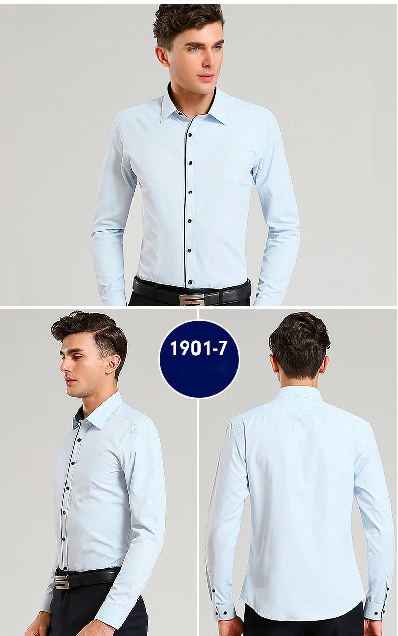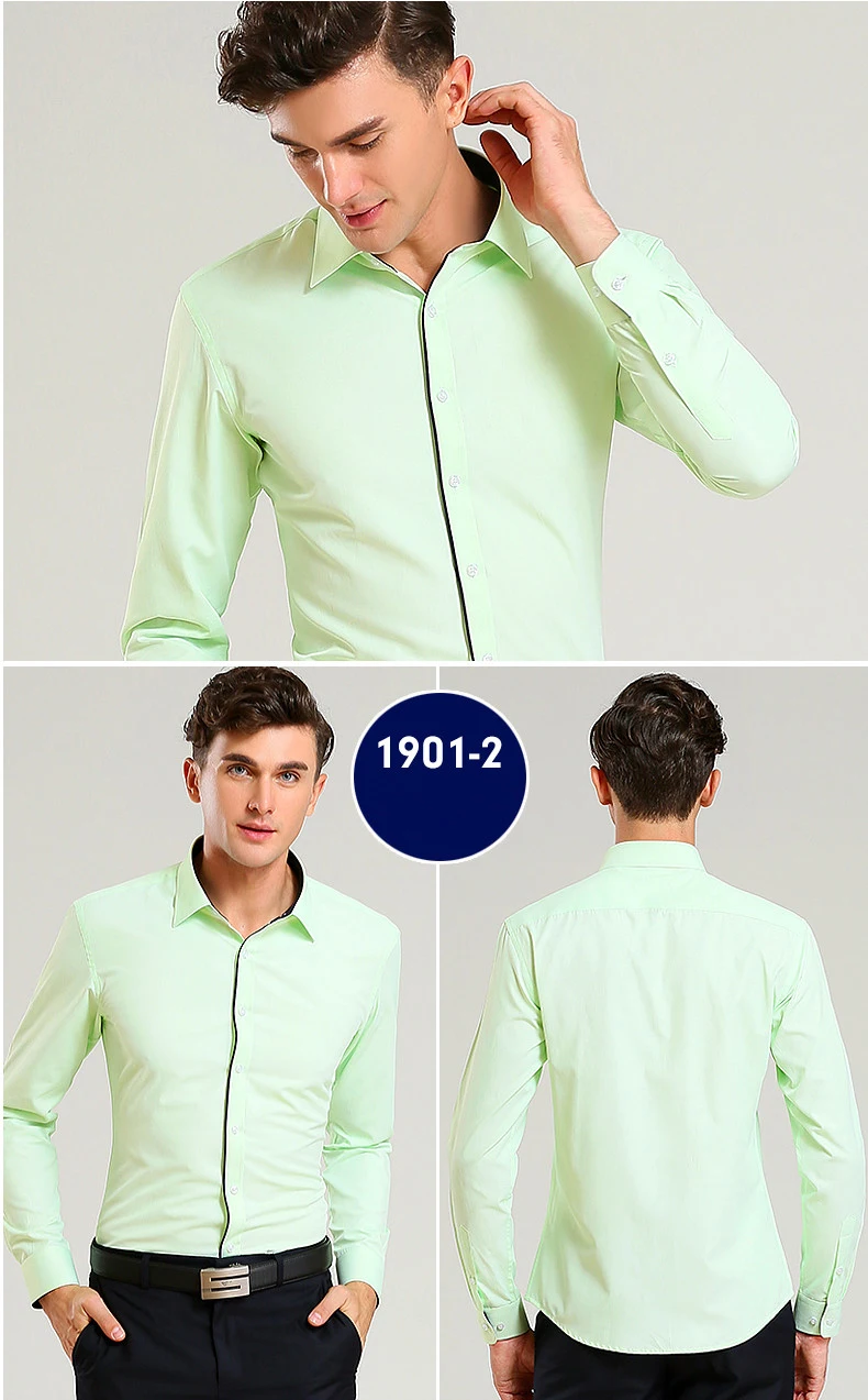 Мужская Однотонная рубашка с длинным рукавом, формальная Классическая деловая Повседневная рубашка из Твила, для работы