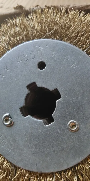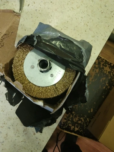 Пришла в Челябинск за несколько дней. Привезли прям на работу. Щетка изрядно поработала: Снимал краску с дерева, железа, отчищал ржавчину, делал много грубой брашировки. Все достойно! Тяжело только на вал одевается и снимается. Приходится молотком помогать...