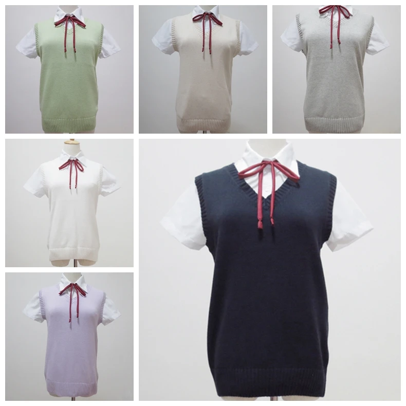 Kawaii, японская школьная форма, свитер без рукавов, милый однотонный жилет для косплея, трикотажный свитер с V-образным вырезом, яркие цвета, K-ON
