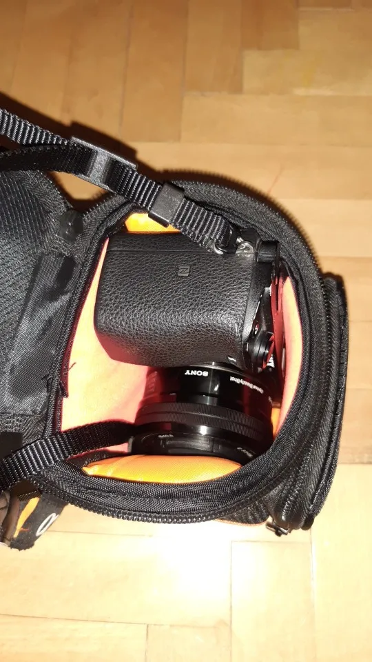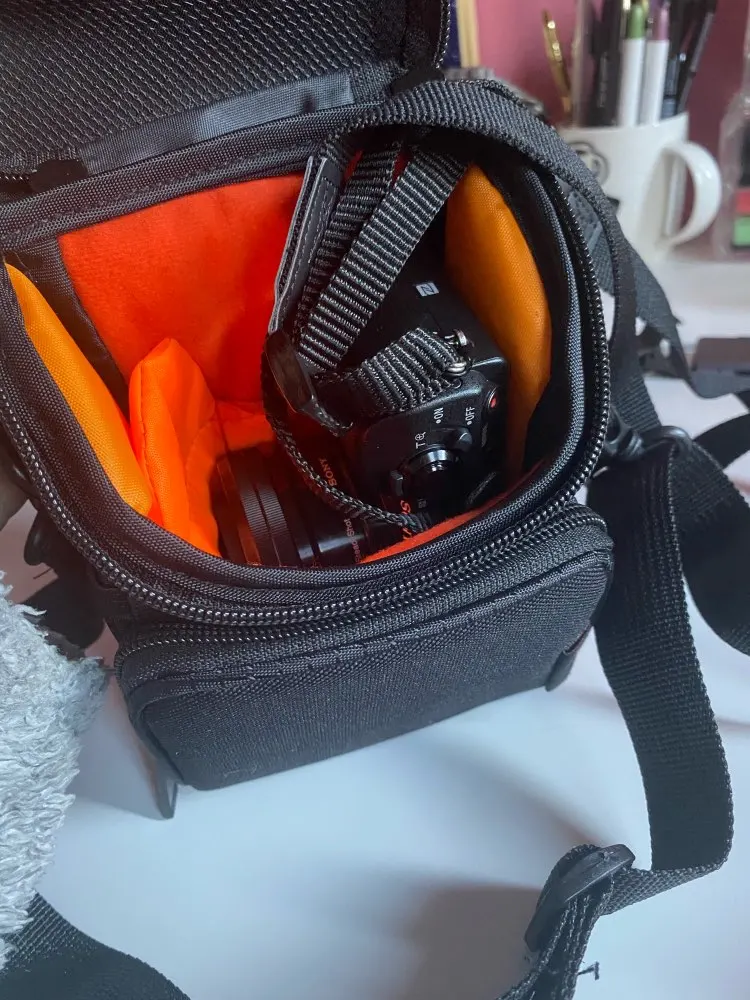Идеально для Sony a6400 с китовым объективом, стоит своих денег, качество хорошее, ремешок с пластиковыми карабинами но они качественные просто так не сломаются, понравилось что внутрь вшиты мягкие прокладки со всех сторон это дополнительная защита, товаром доволен, рекомендую ✨