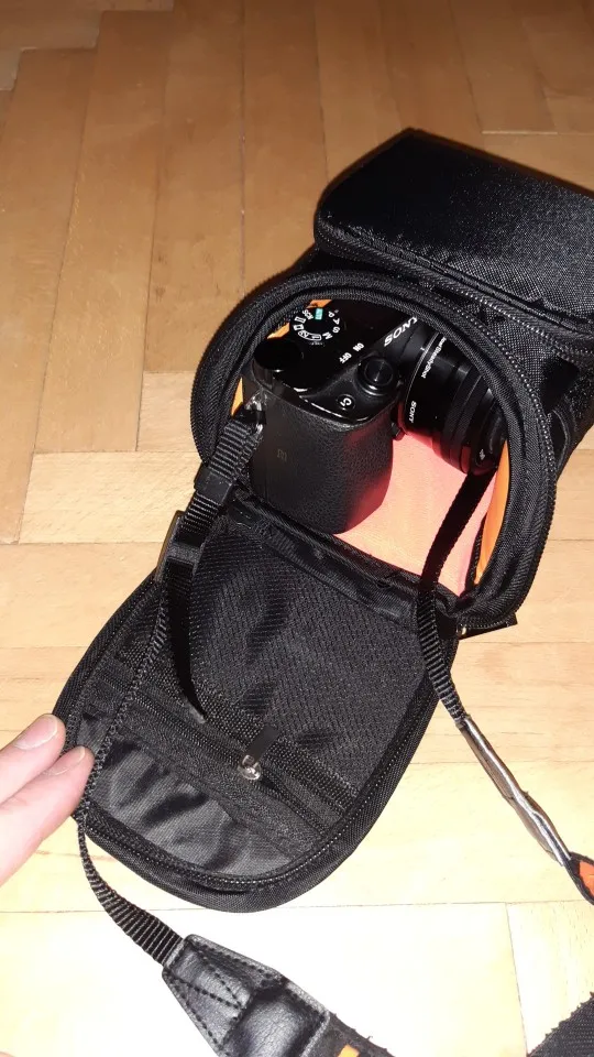Он меньше, чем я думал, но он все еще отлично работает для моей Sony Alpha 6100 с целью. 16-50. Он имеет внешний карман и внутренний карман и имеет регулируемый ремешок, так что его можно носить в руке или плече. Очень красивый. Выглядит жестко. Он прибыл примерно через две недели в Испанию.