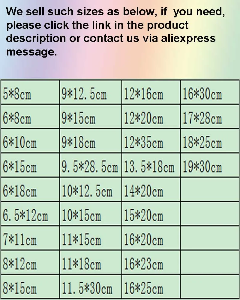 Внешние размеры:6 см * 8 см Толщина: 0,075 мм Материал: APET / CPP Предотвращает статическое наращивание и защищает чувствительные электронные компоненты от повреждения электрических разрядов и полейЕсли вы хотите приобрестиДругое количествоИлиОптовая продажа, Пожалуйста, свяжитесь с нами через Aliexpress сообщения!