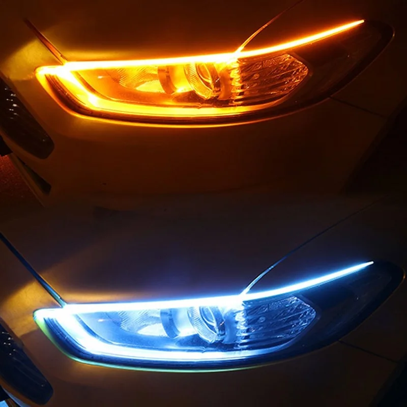 Дневные ходовые огни DRL, 2 шт., переключаемая лента, лампа 304560 см, белый с плавным желтым цветом, дневной свет Ангельского глаза