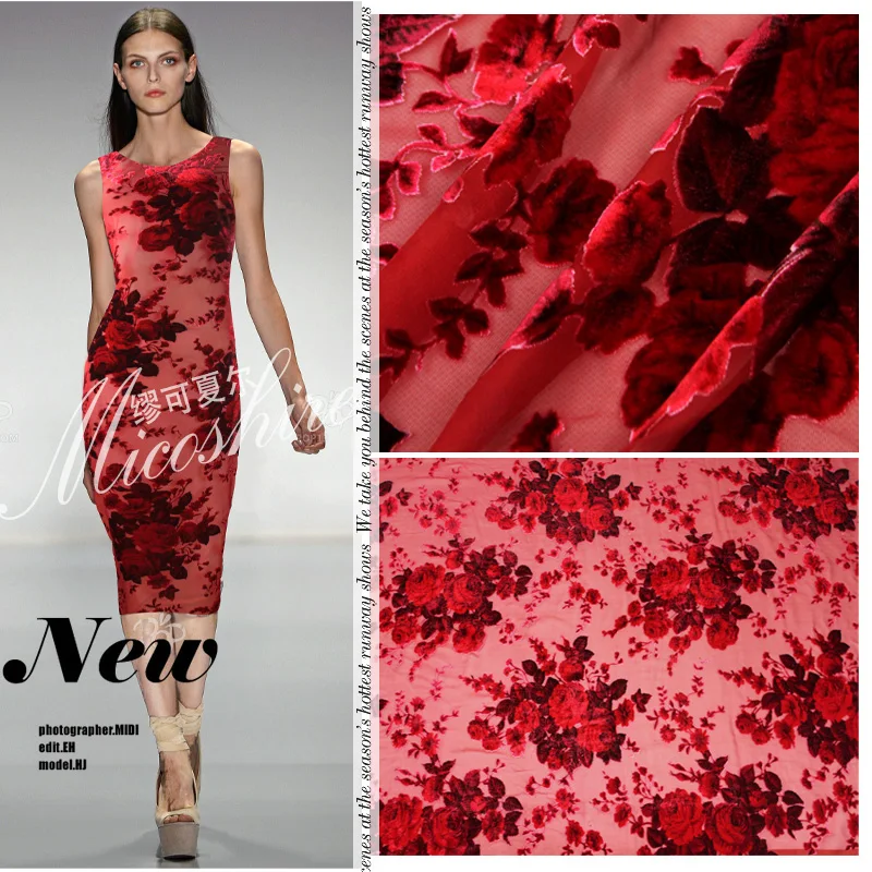 Бесплатная Ретро Красная роза 100% шелк бархатная ткань женская одежда свадебное платье модная ткань ручной работы сделай сам Сетка жаккард материал OEM