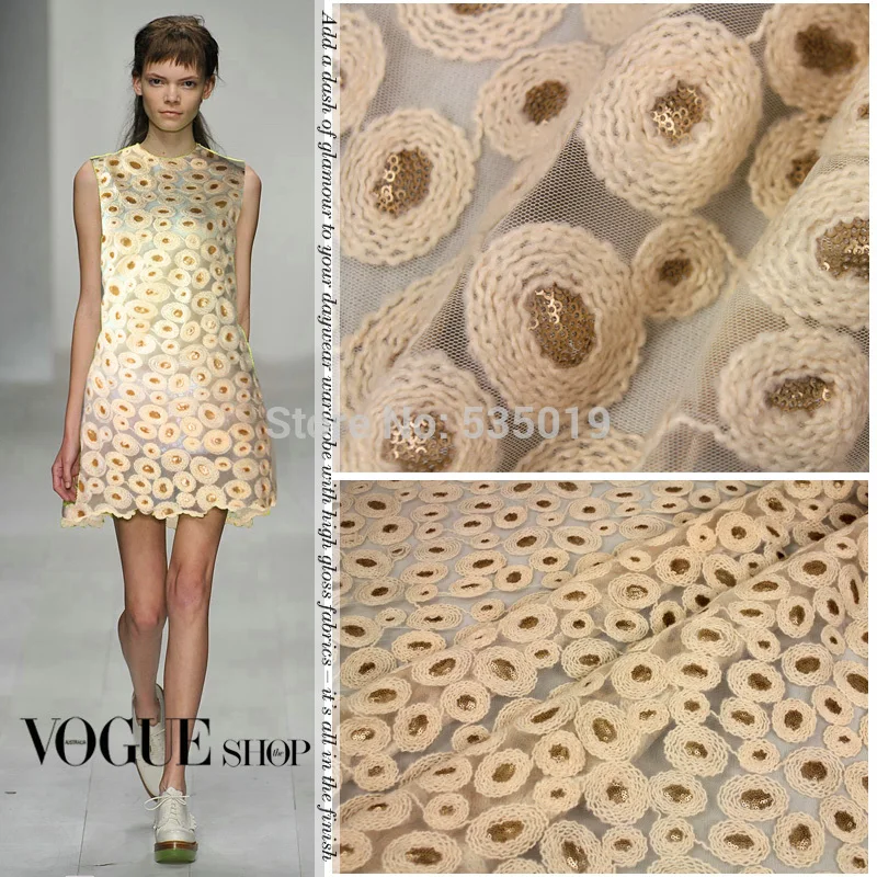 Вышитая ткань бежевая кружевная ткань круглый жаккард ручная работа diy Одежда цельнокроеное платье ткань шелк
